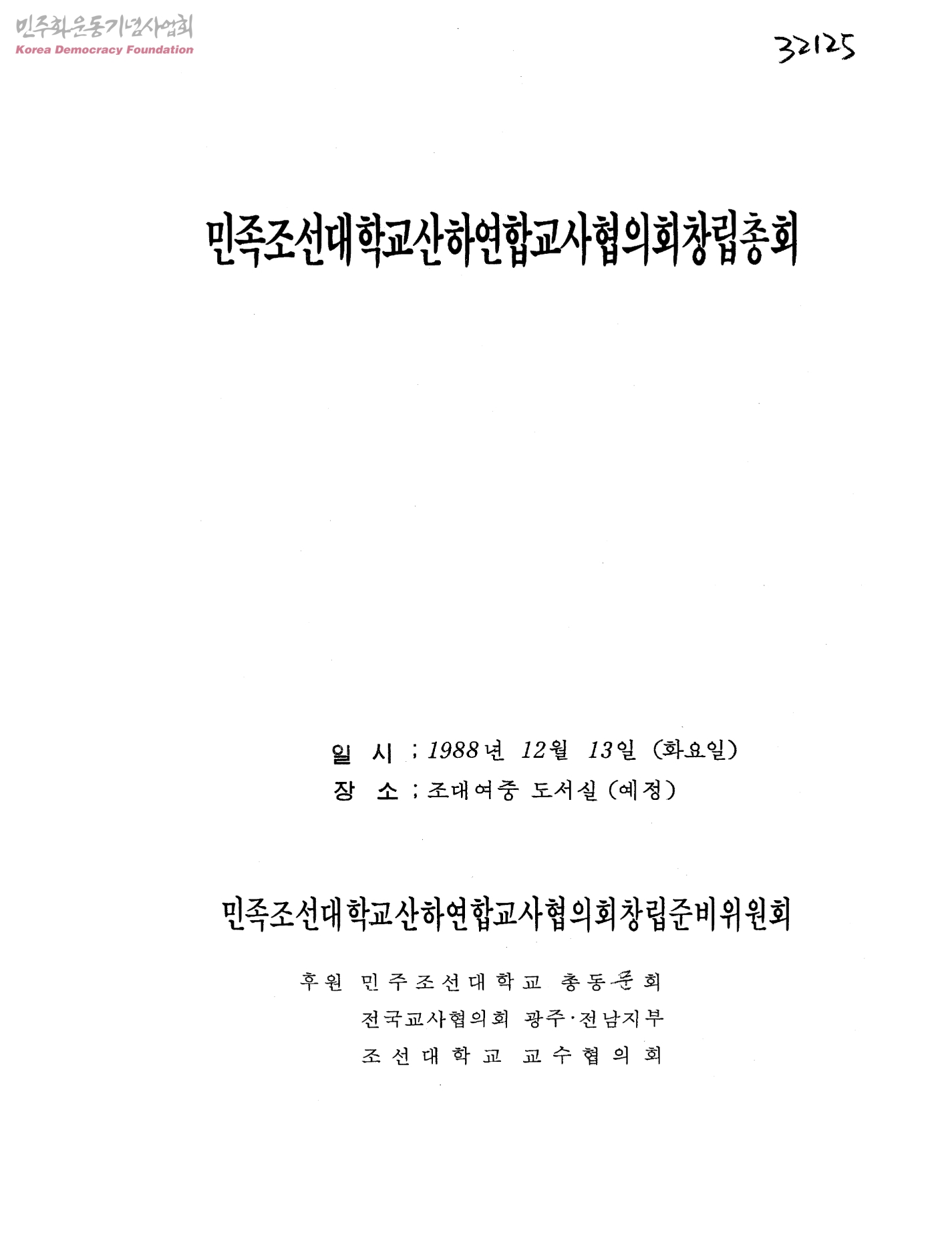 - 민족조선대학교산하연합교사협의회창립준비위원회
