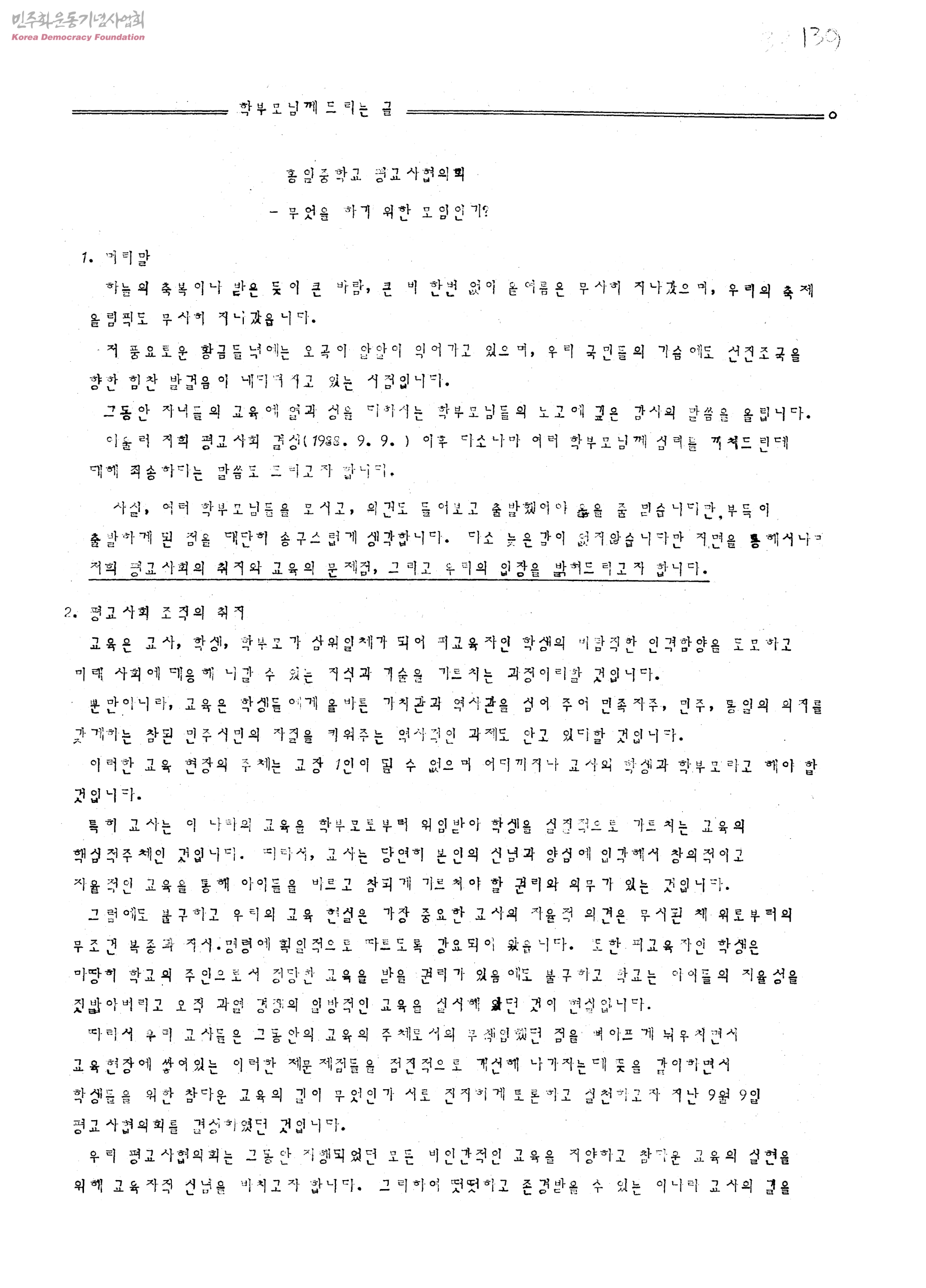 학부모님께 드리는 글홍임중학교 평교사 협의회- 무엇을 하기 위한 모임인가?