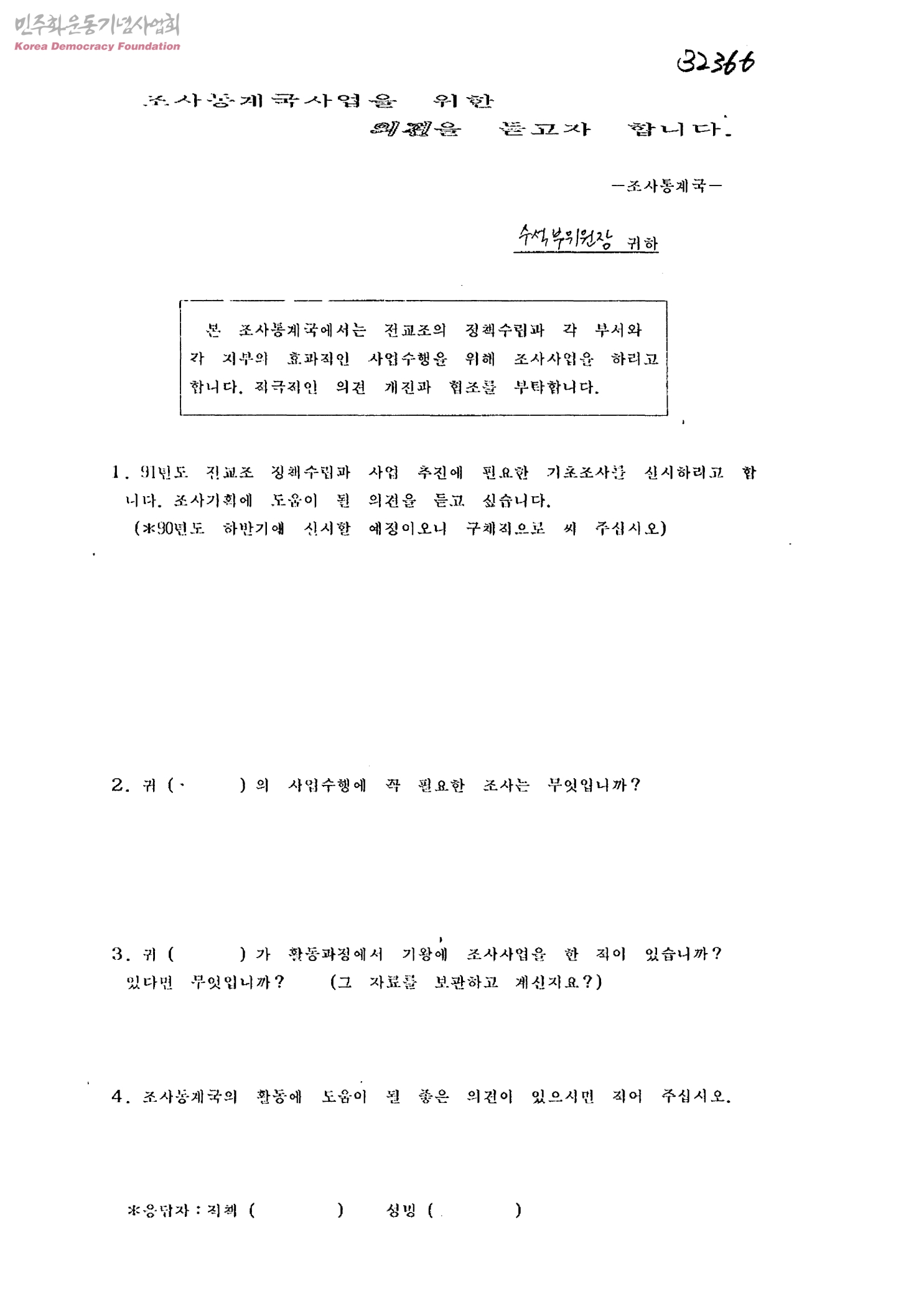 조사통계국사업을 위한 의견을 듣고자 합니다.