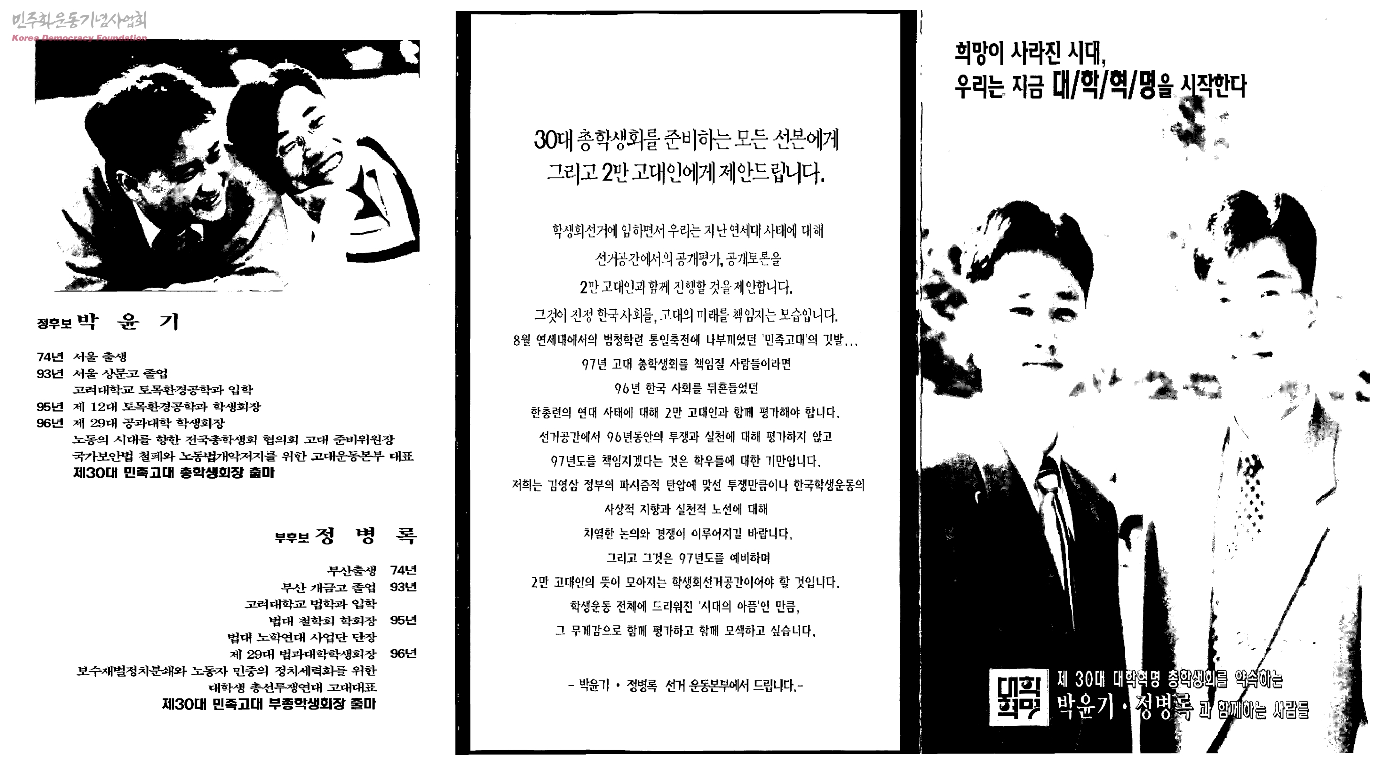 희망이 사라진 시대, 우리는 지금 대/학/혁/명을 시작한다[30대고대총학생회 선거홍보팜플렛 - 박윤기·정병록]