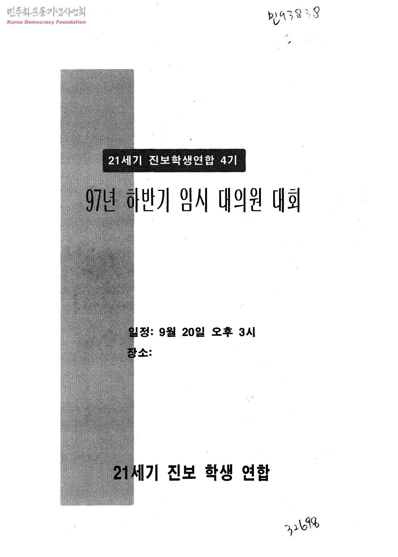 21세기 진보학생연합 4기 97년 하반기 임시 대의원 대회