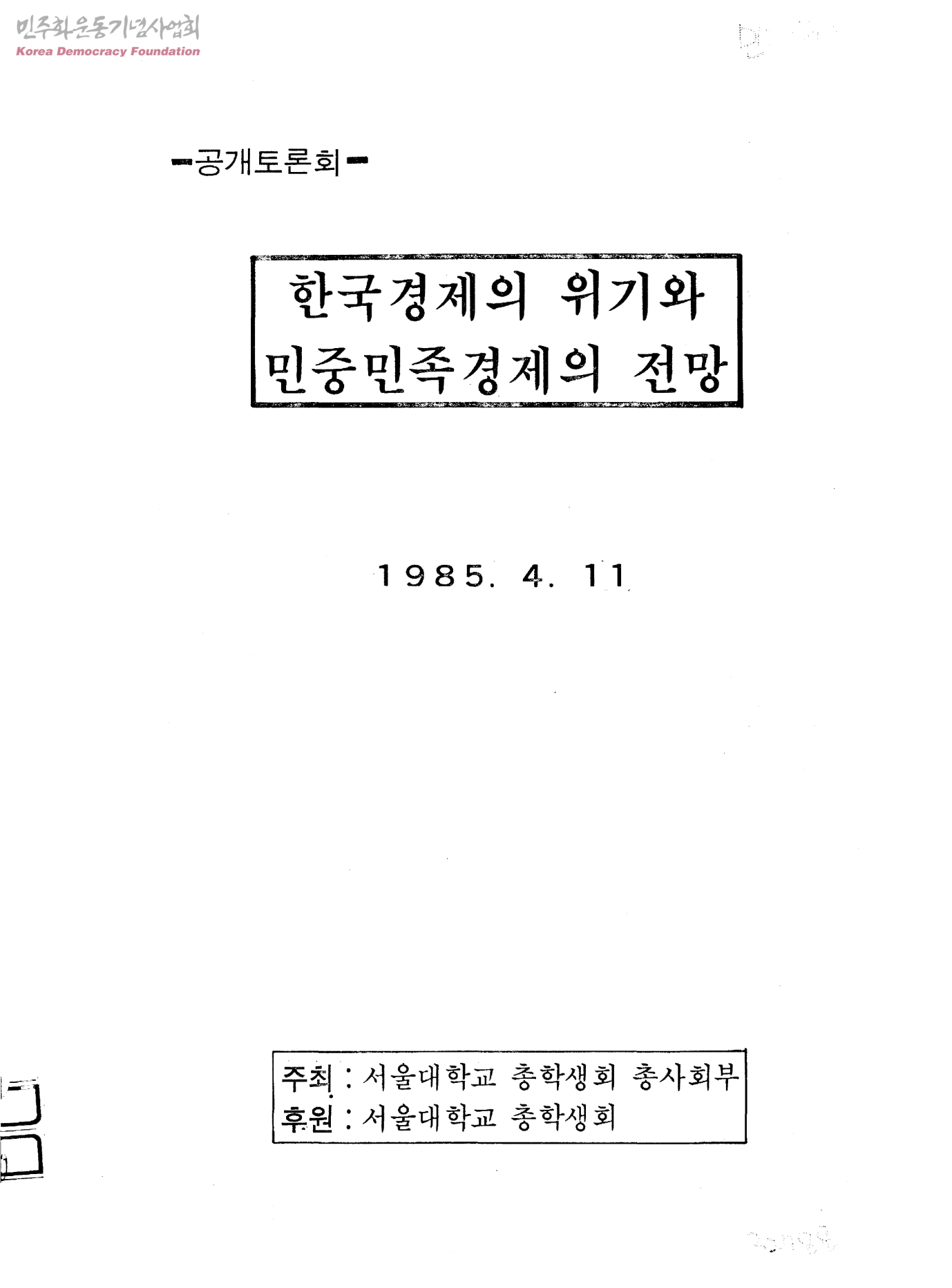 공개토론회-한국경제의 위기와 민중민족경제의 전망
