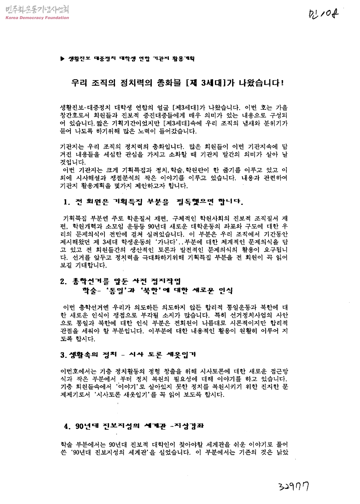 생활진보 대중정치 대학생 연합 기관지 활용계획