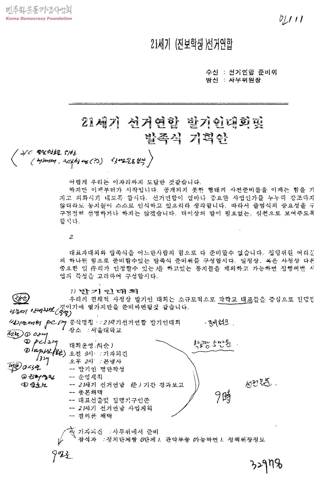 21세기 선거연합 발기인대회 및 발족식 기획안