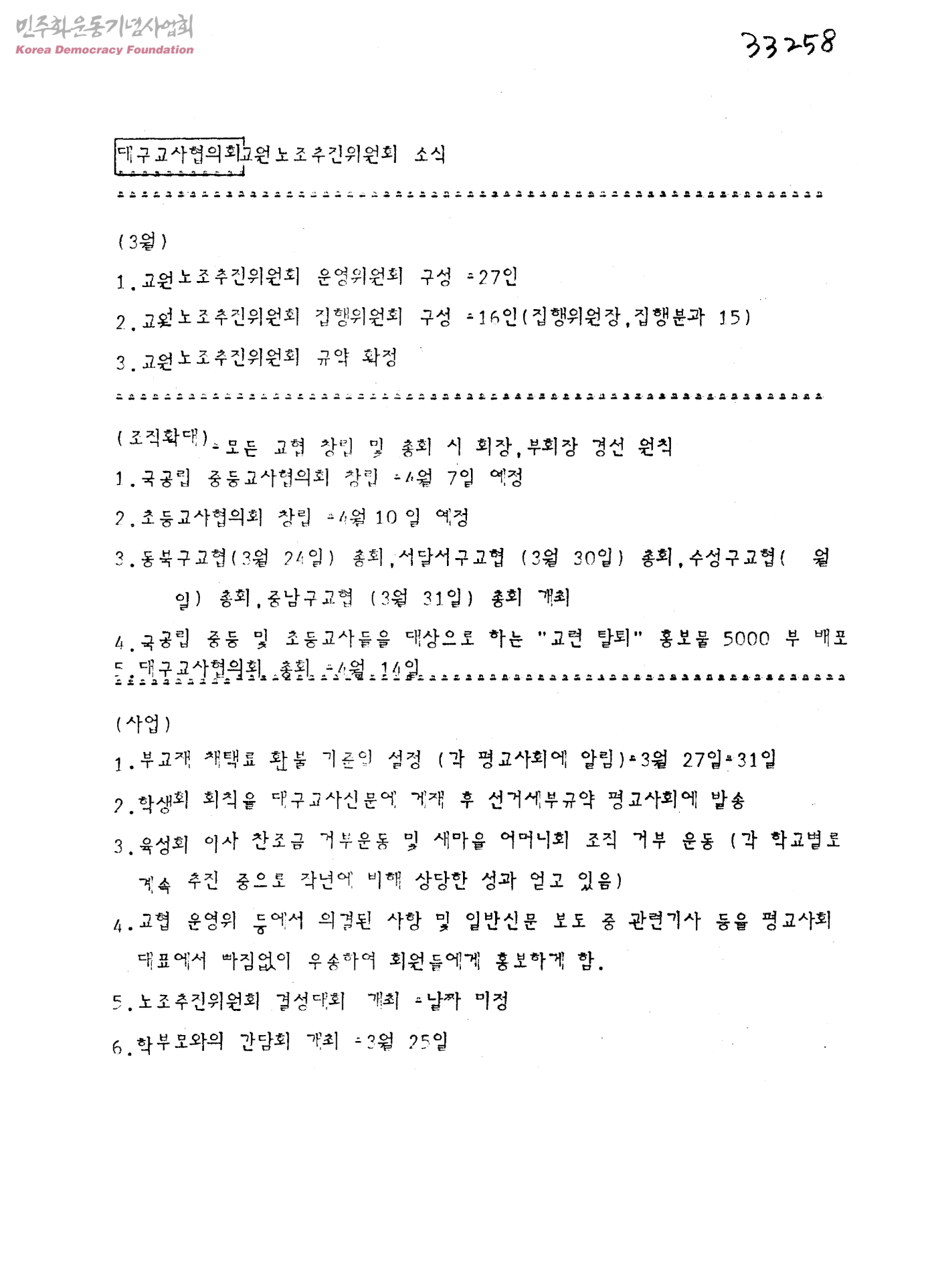 대구교사협의회 교원노조추진위원회 소식