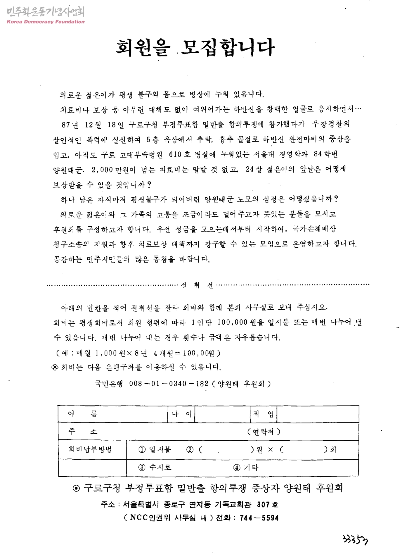 - 구로구청부정투표함밀반출항의투쟁중상자양태원후원회