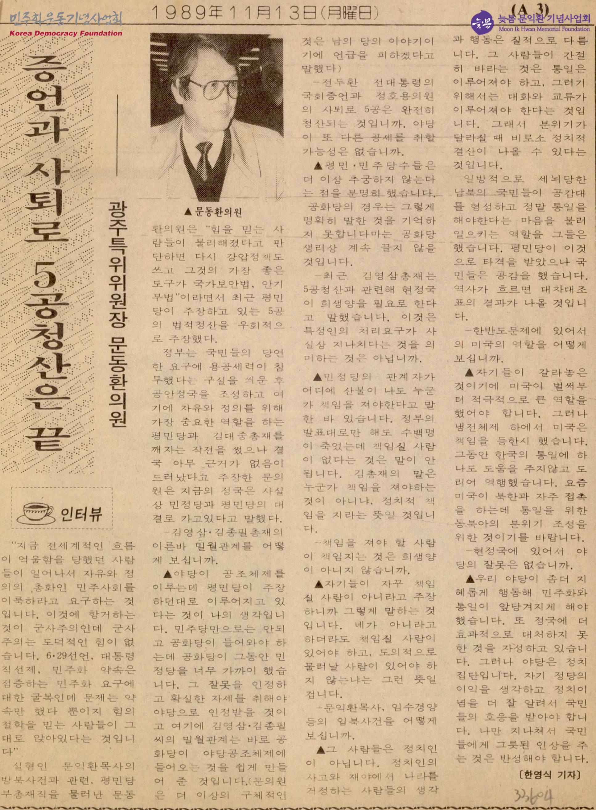 증언과 사퇴로 5공청산은 끝
