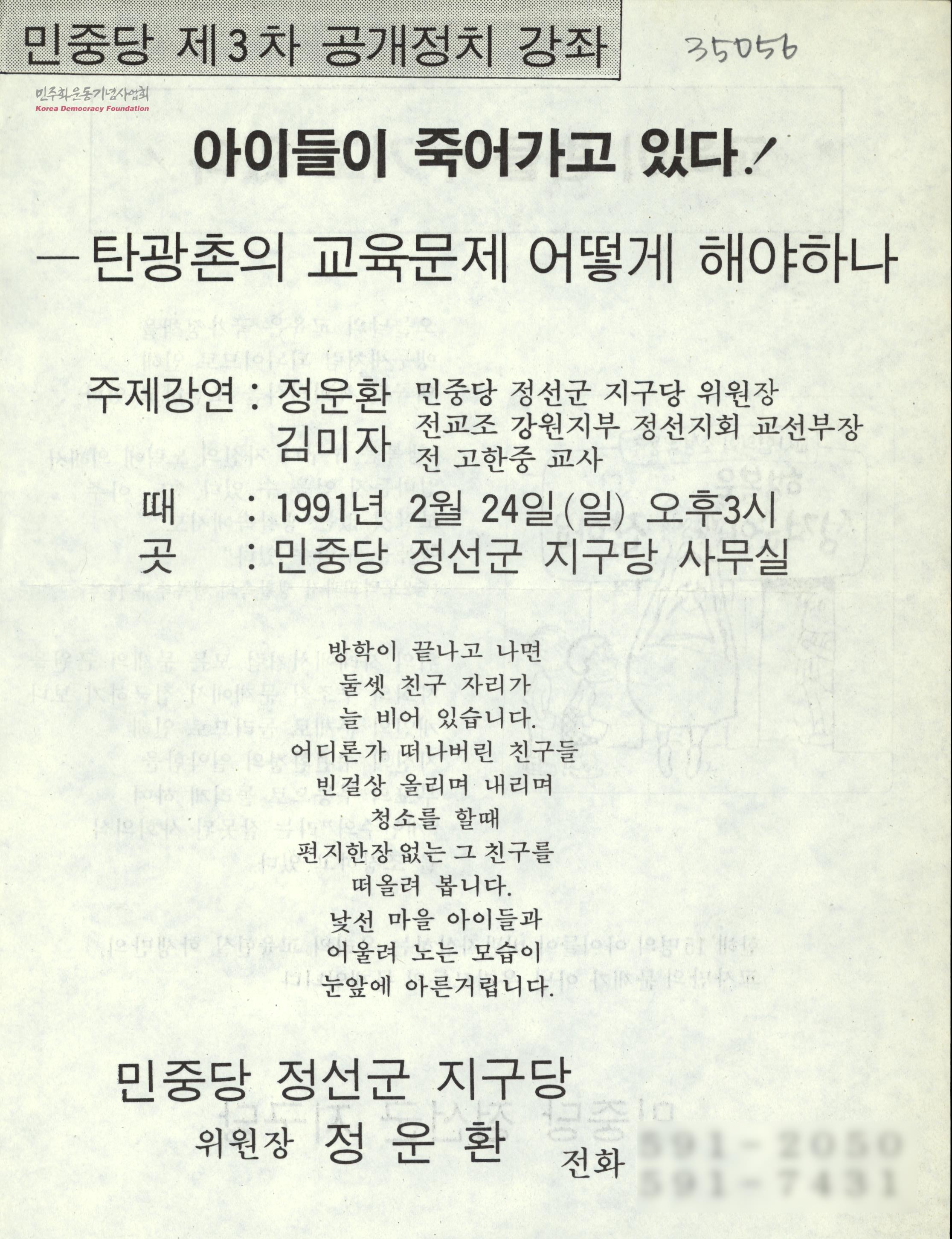 민중당 제3차 공개정치 강좌 - 아이들이 죽어가고 있다.! -탄광촌의 교육문제 어떻게 해야하나