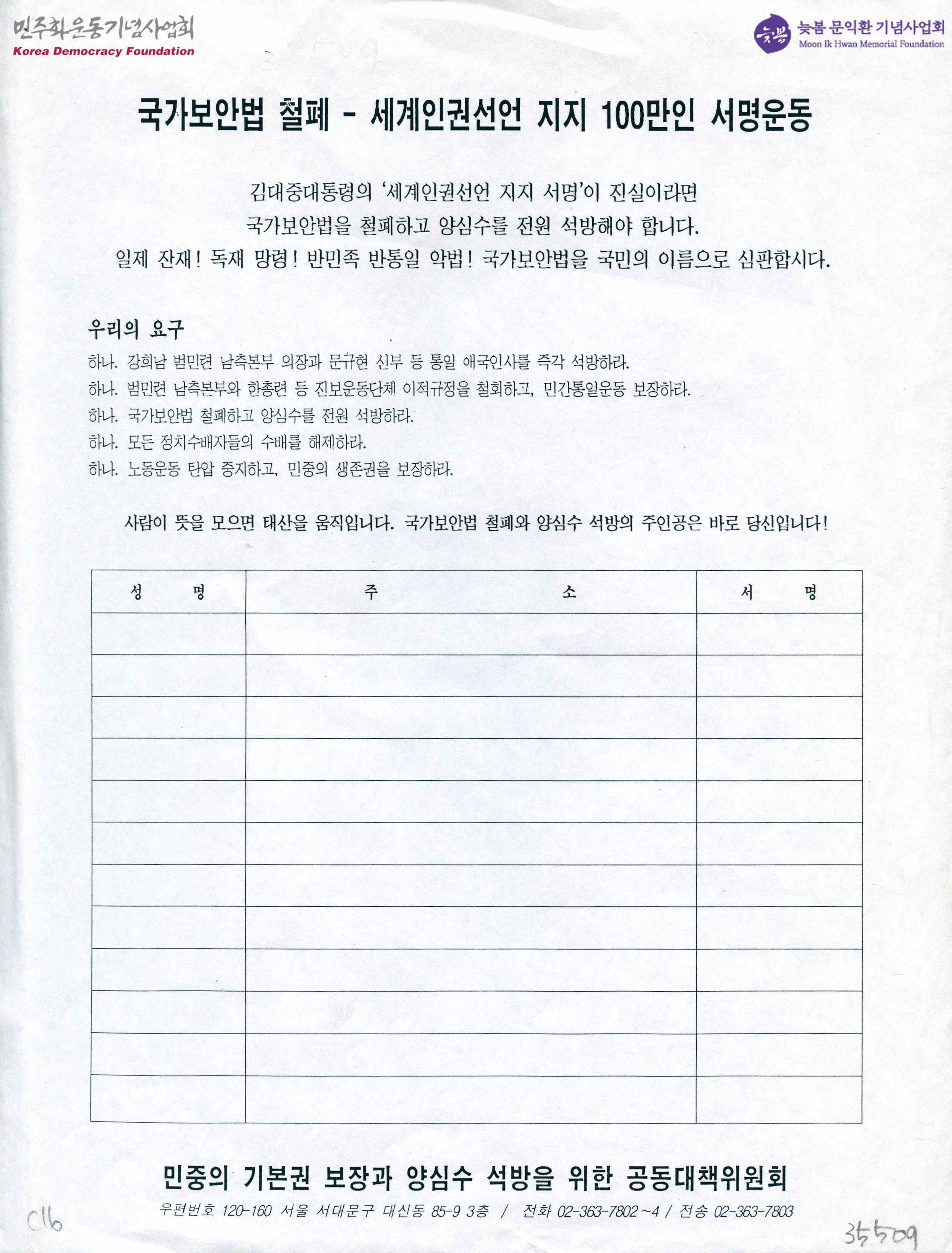 국가보안법 철폐 - 세계인권선언 지지 100만인 서명운동