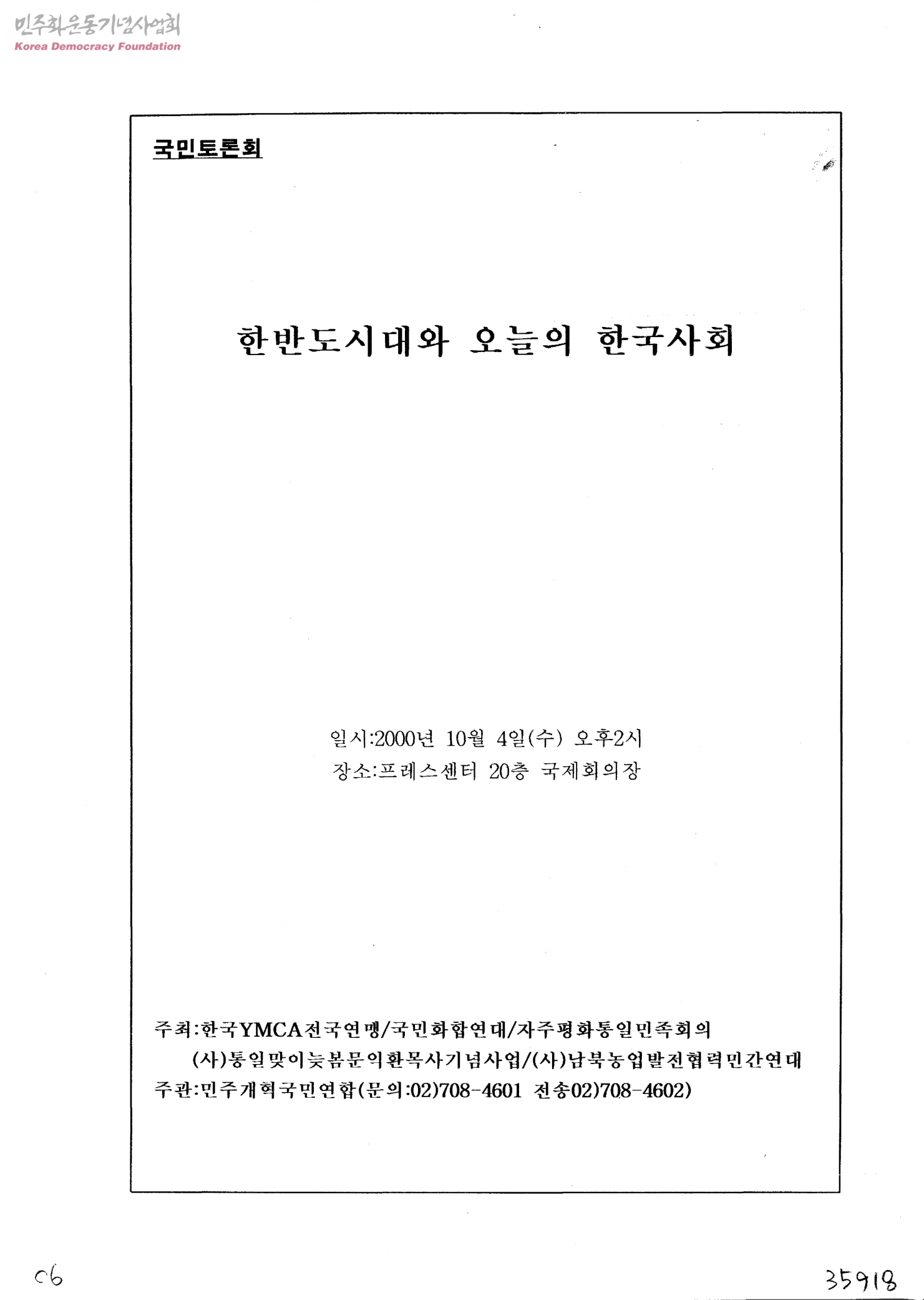 국민토론회-한반도시대와 오늘의 한국사회