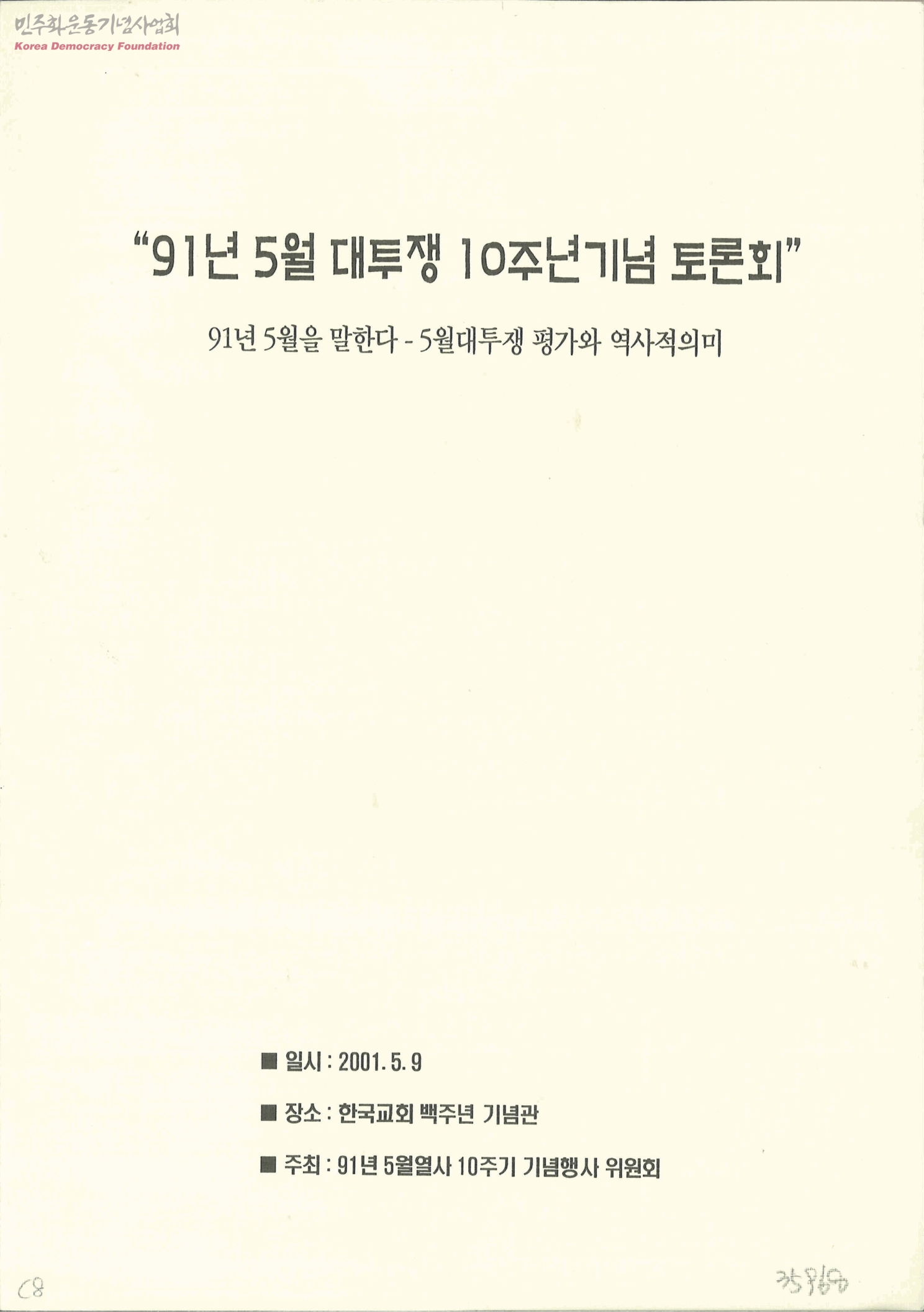 91년 5월 대투쟁 10주년기념 토론회-91년 5월을 말한다(5월대투쟁 평가와 역사적 의미)