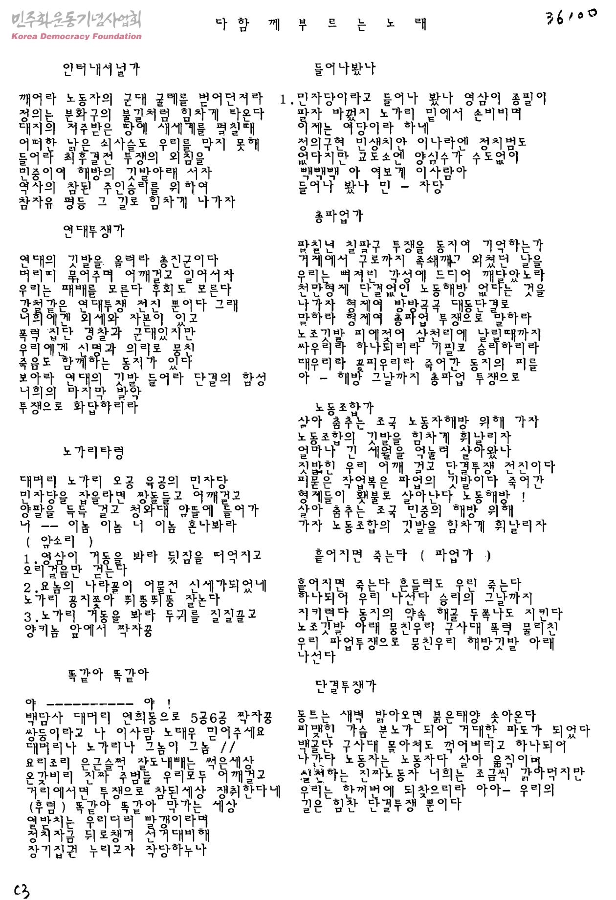 다함께 부르는 노래[인터내셔널가, 들어나봤나 외 7곡]