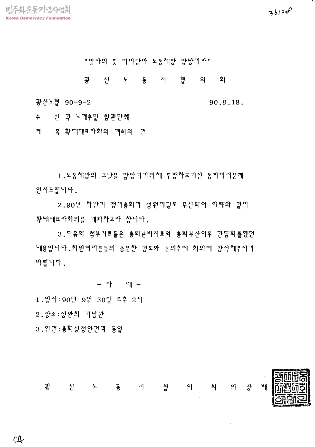 확대대표자회의 개최의 건[수신:각 노개추 및 참관단체, 발신:광산노동자협의회]