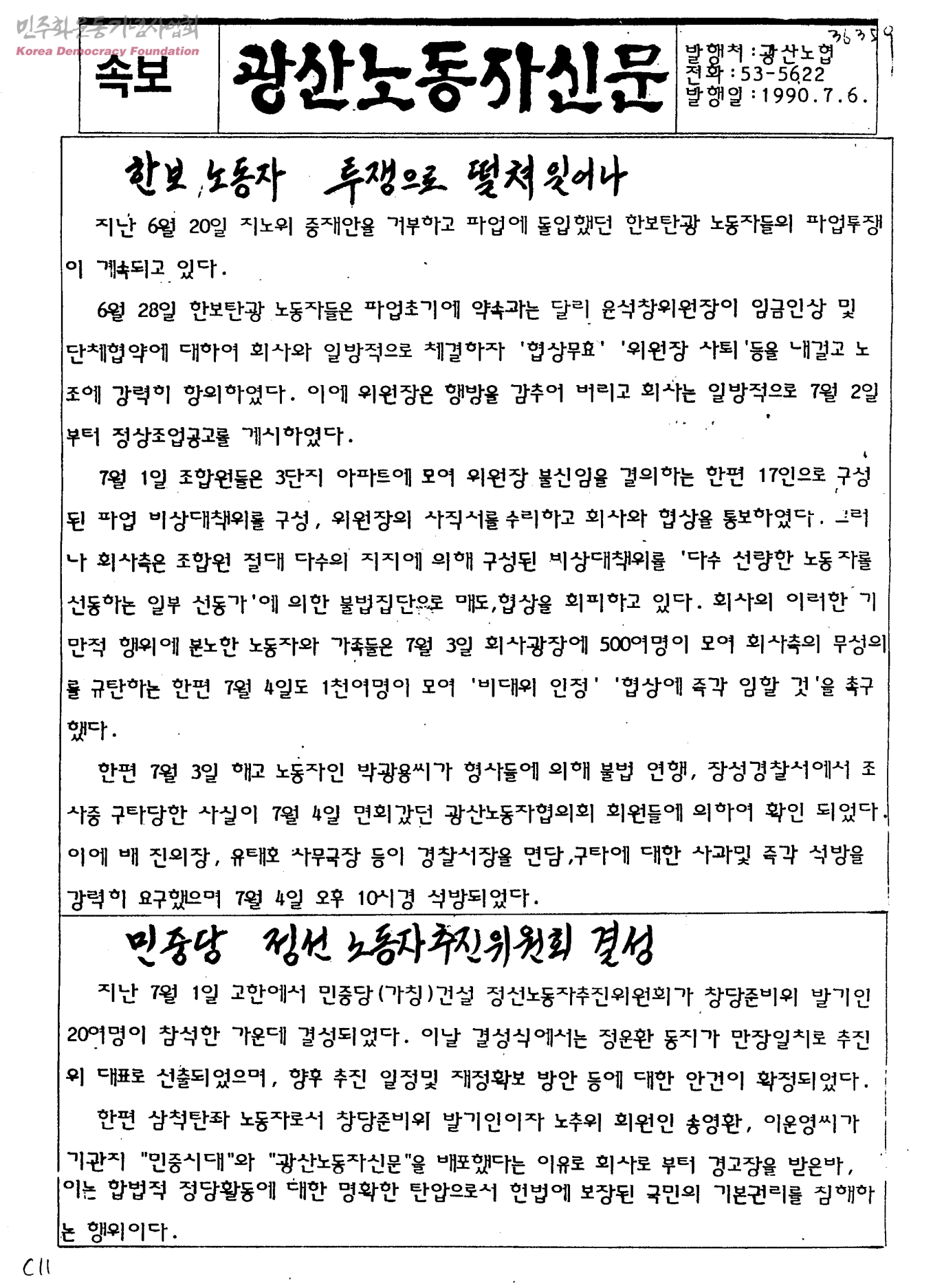 광산노동자신문(속보)