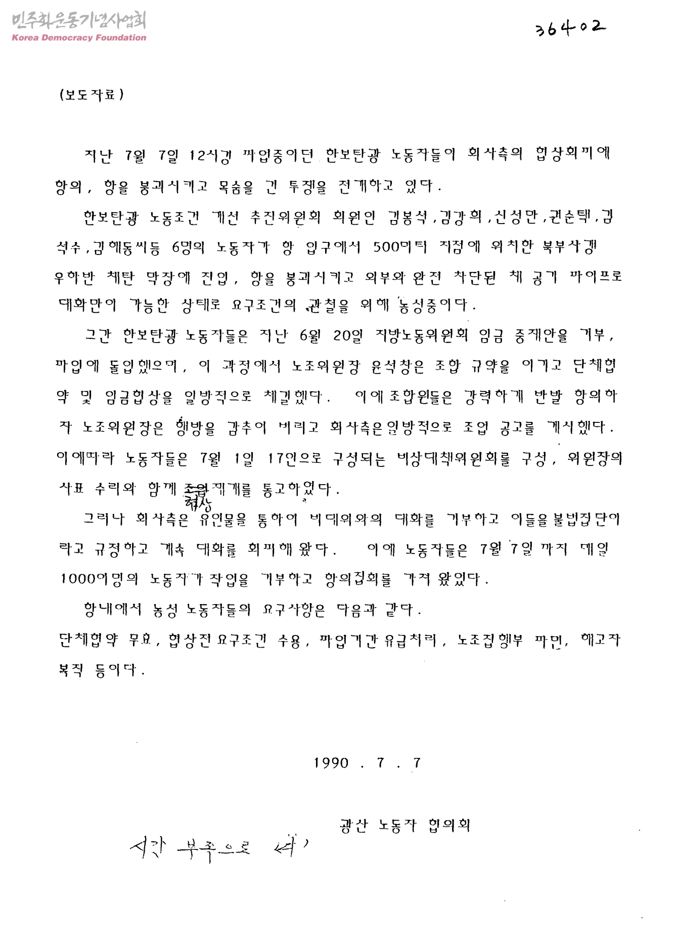 [광산노동자협의회 보도자료]