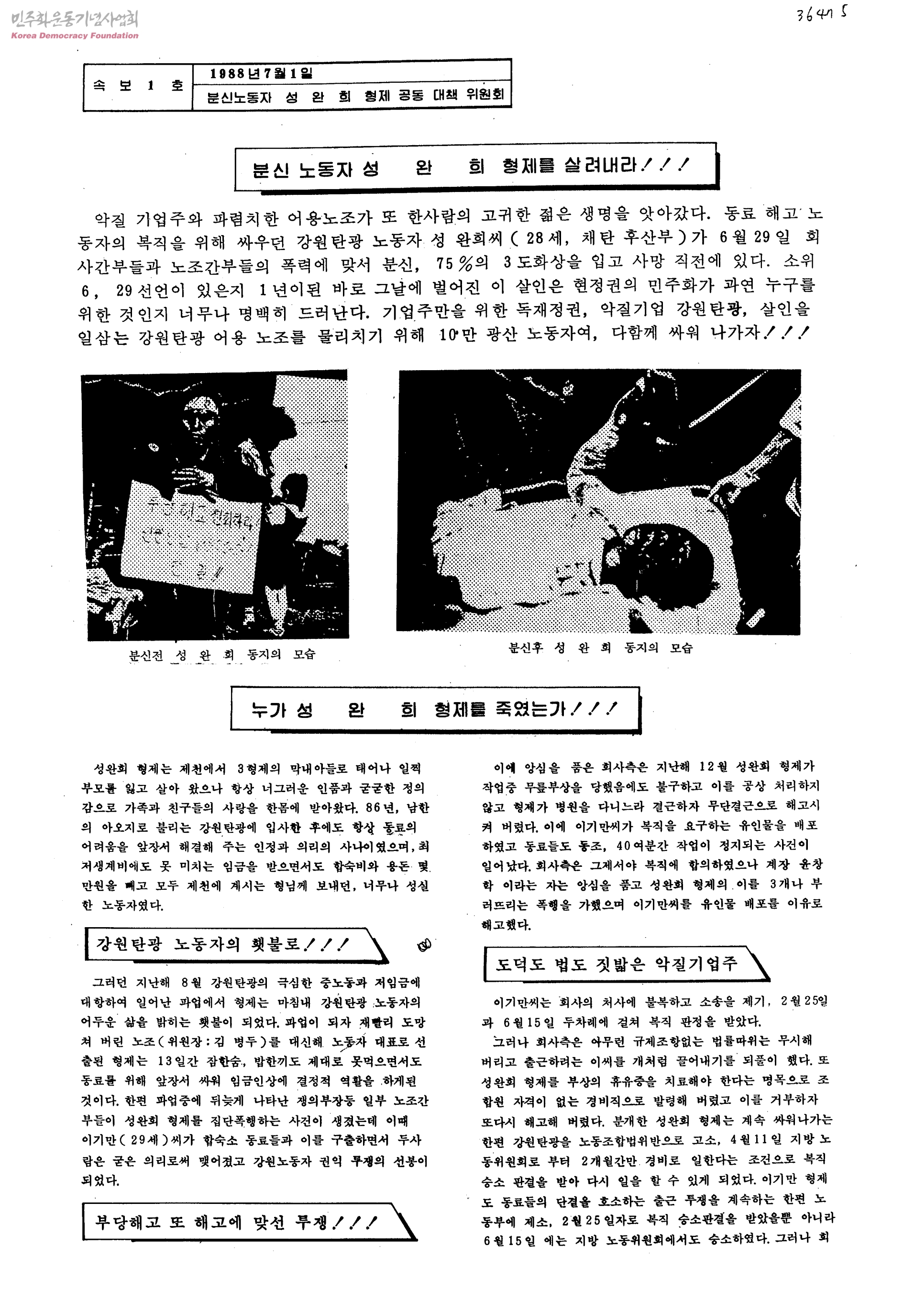 분신노동자 성완희 형제을 살려내라