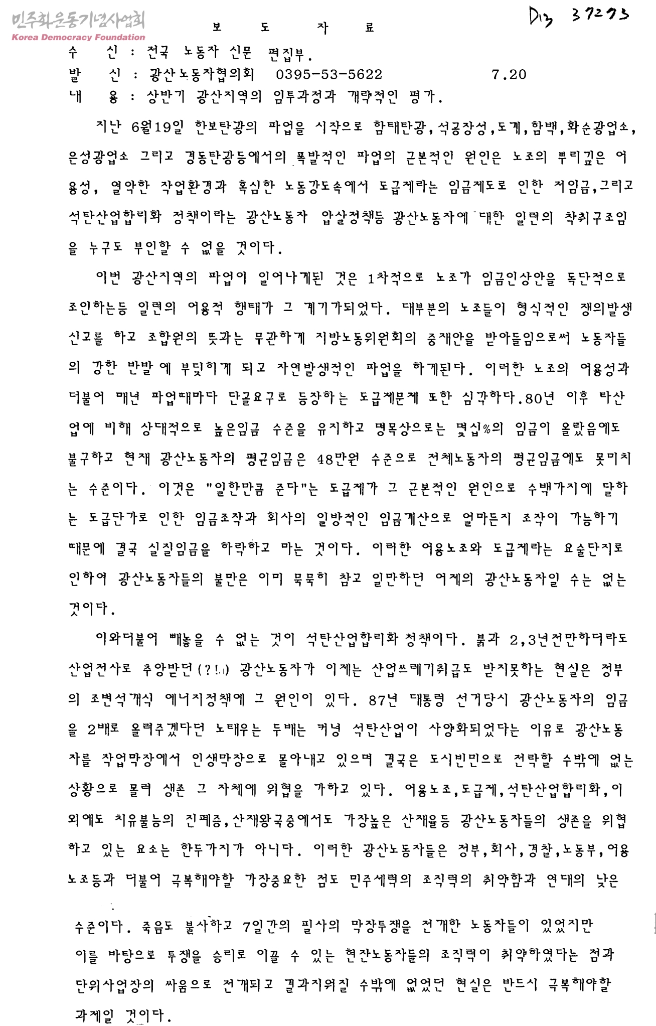 상반기 광산지역의 임투과정과 개략적인 평가[수신:전국 노동자 신문 편집부, 발신:광산노동자협의회]