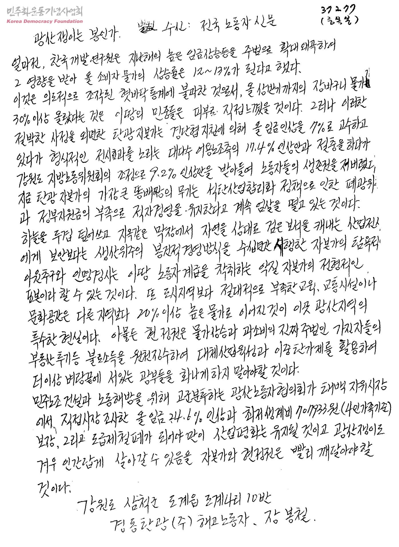 - 경동탄광㈜ 해고노동자 장봉철