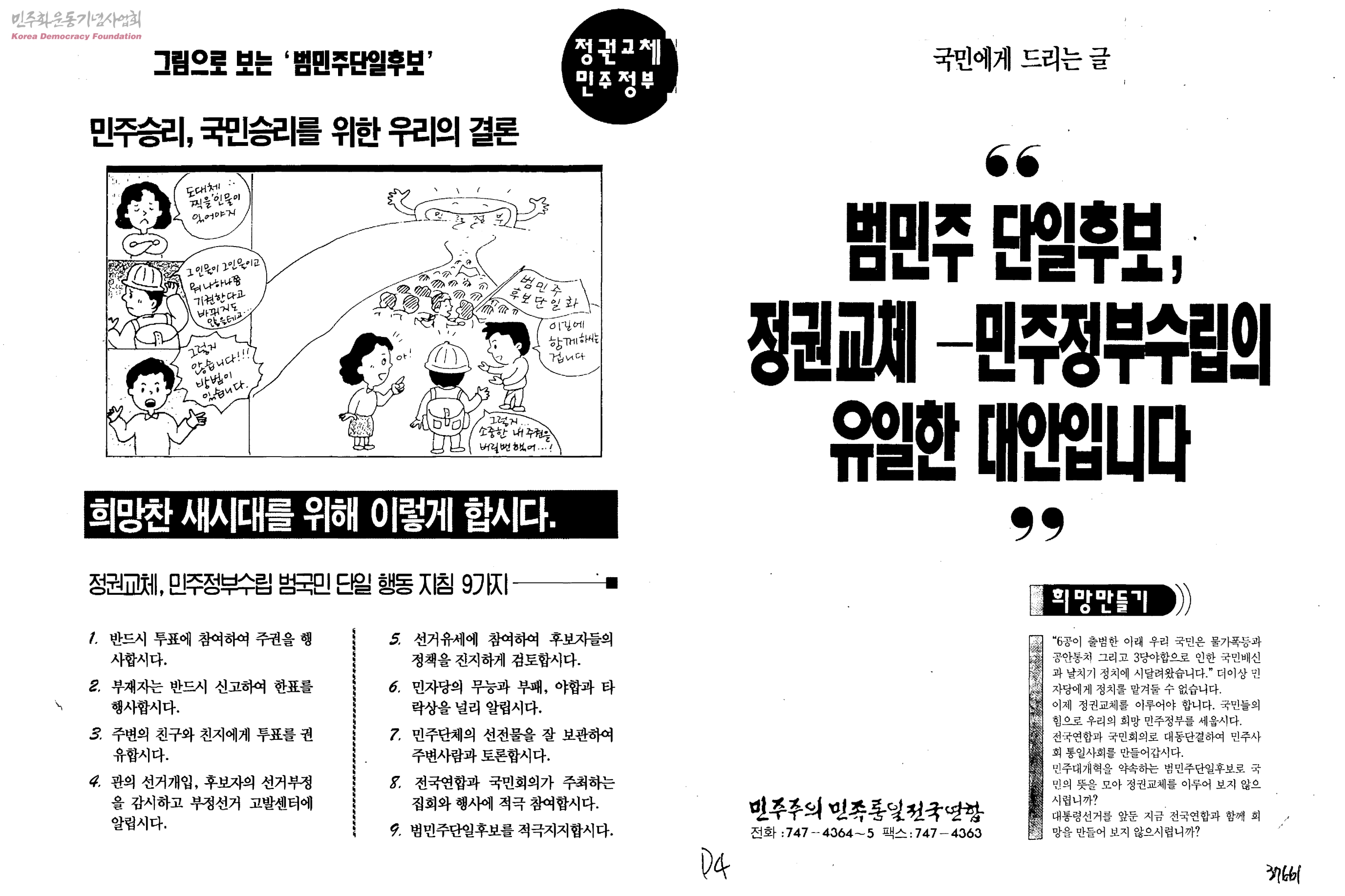 범민주 단일후보, 정권교체-민주정부수립의 유일한 대안입니다