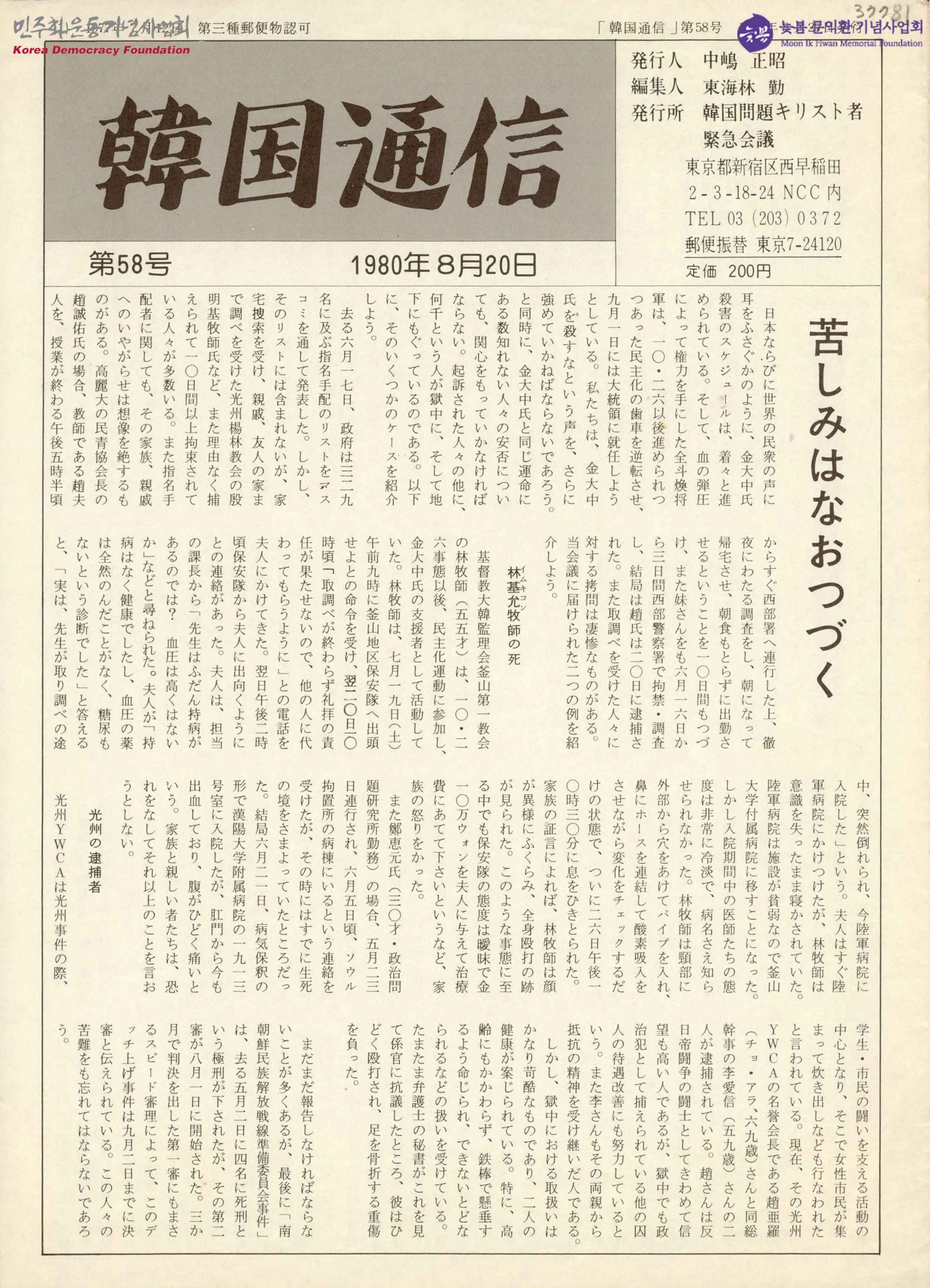 - 韓國問題キリスト者緊急會議