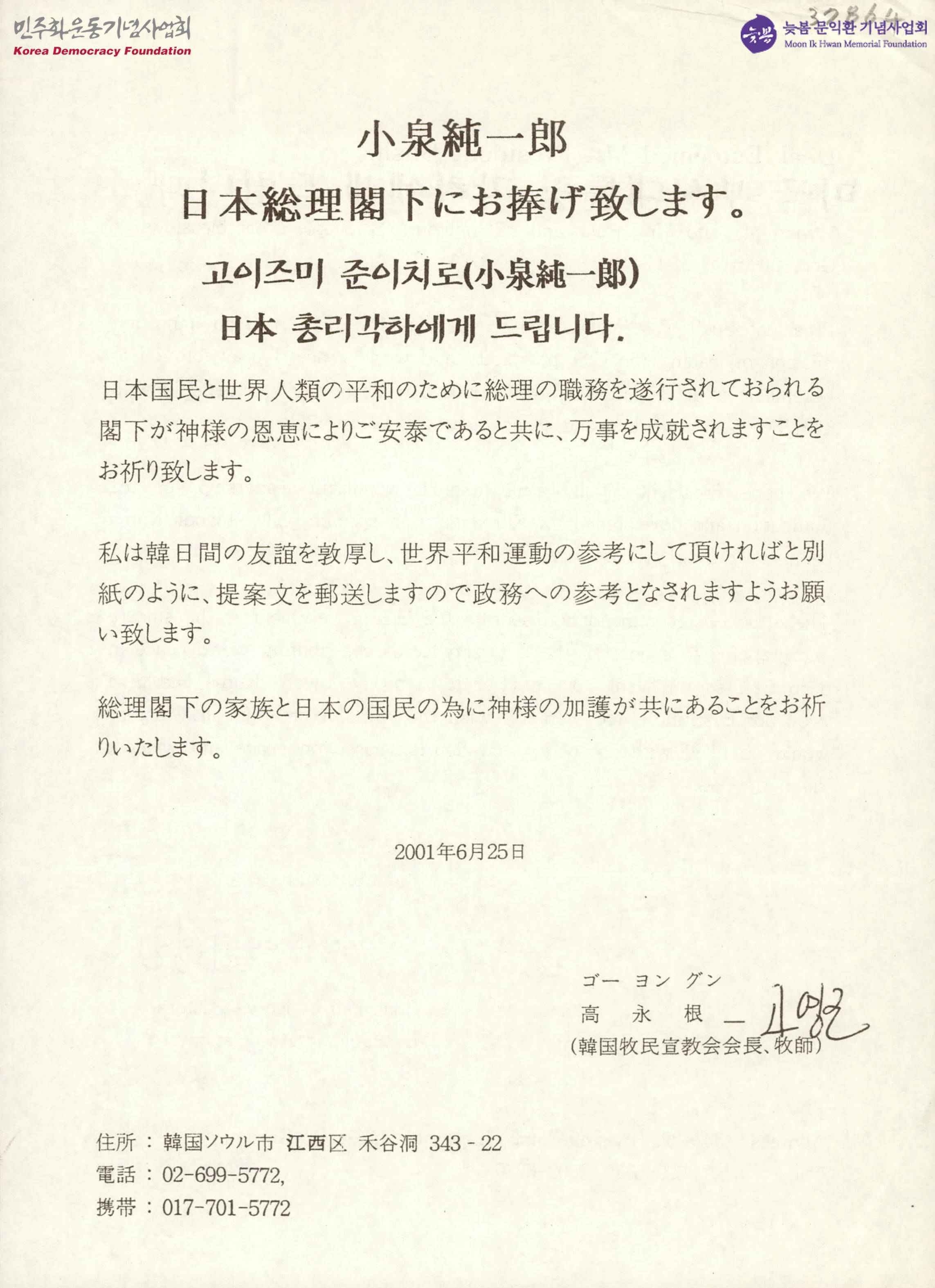 [高永根이 小泉純一良(고이즈미 준이치로)에게 보내는 서신]