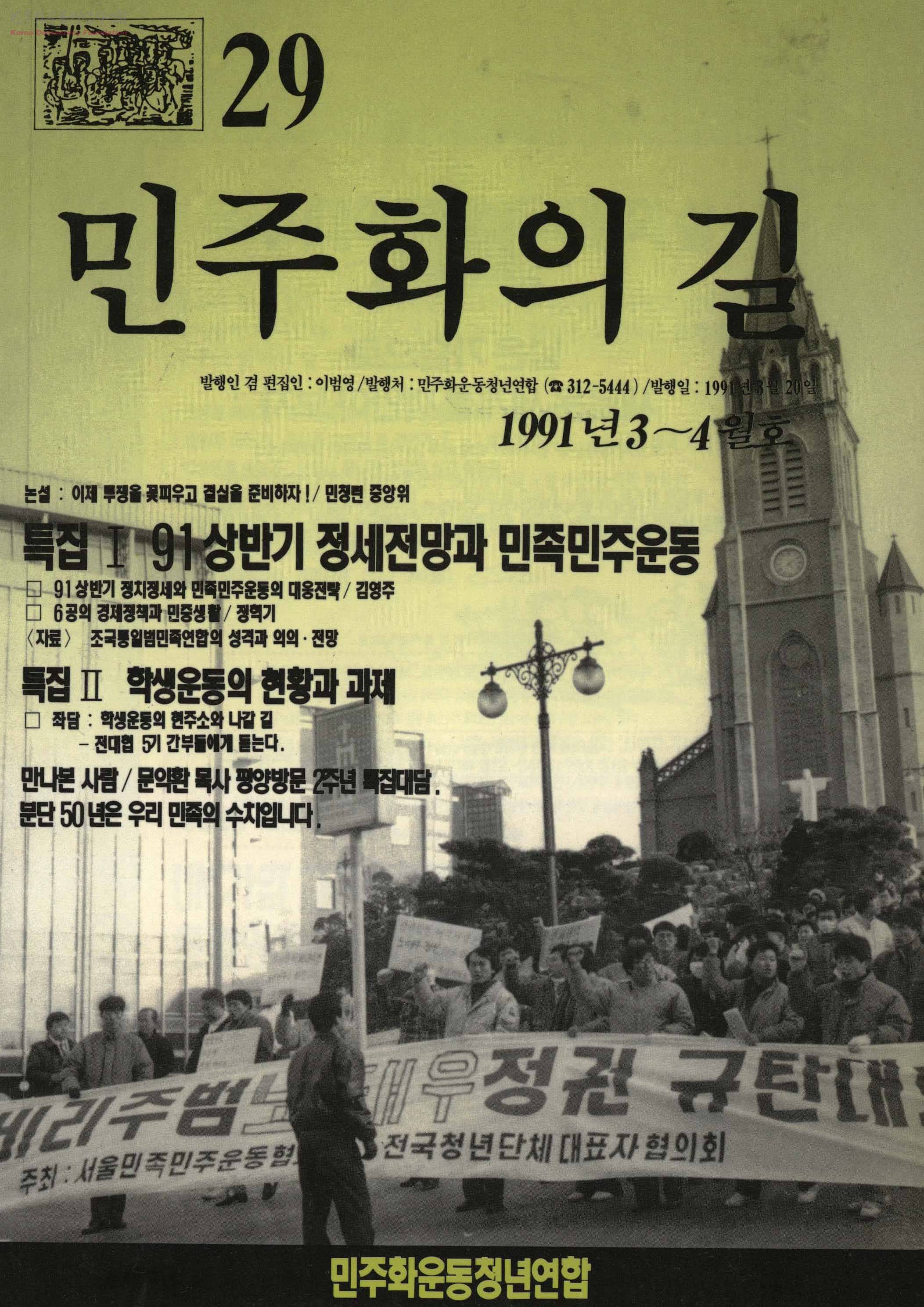 - 이제 투쟁을 꽃피우고 결실을 준비하자 91 상반기 정세전망과 민족민주운동 학생운동의 현황과 과제 문익환 목사 평양방문 2주년 특집대담 등