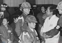 - 군부독재 종식시키고 미국을 몰아내자 민주헌법이 국민의 손으로 쟁취될 때까지 싸워 나가자 등.