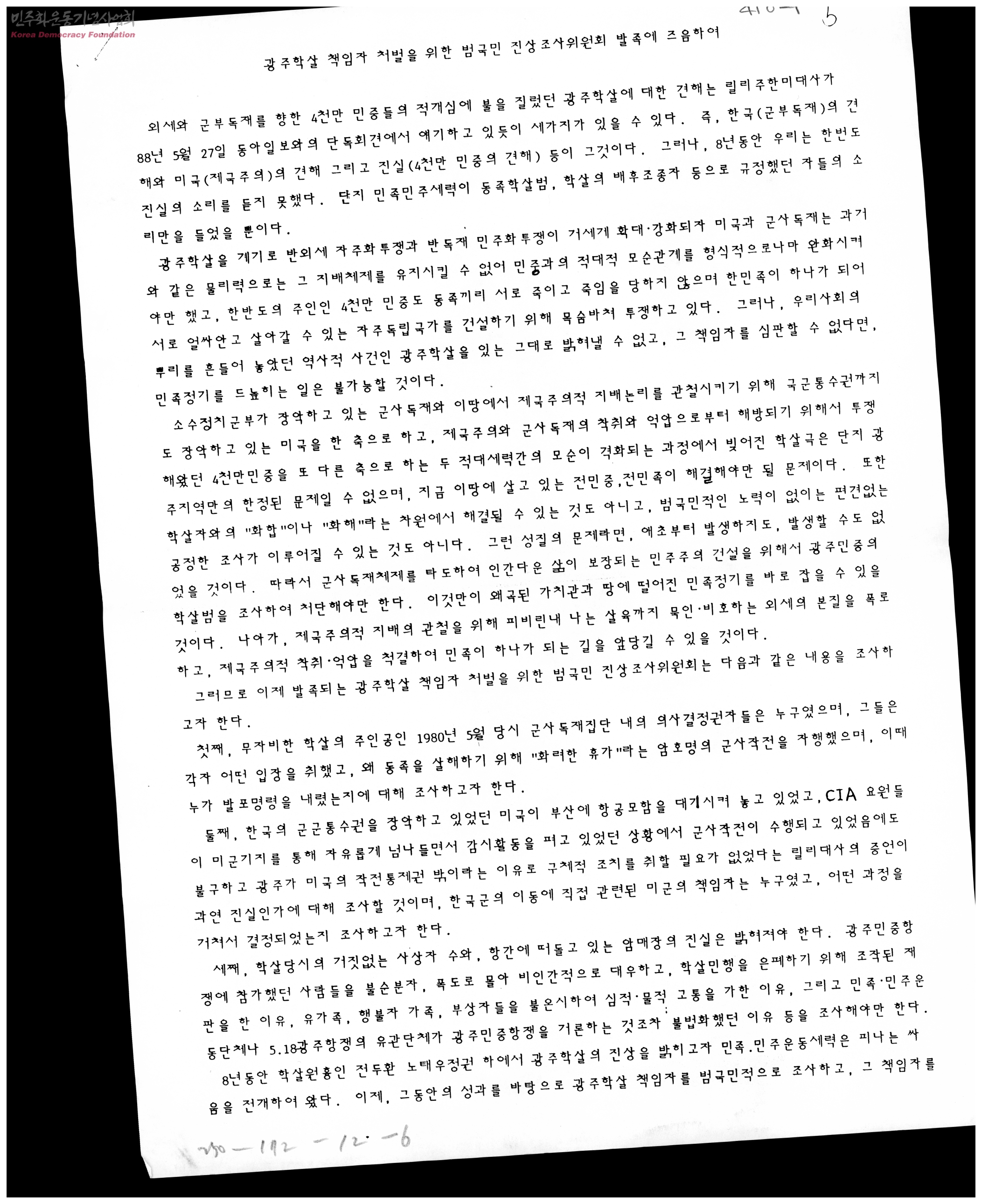 광주학살 책임자 처벌을 위한 범국민 진상조사위원회 발족에 즈음하여