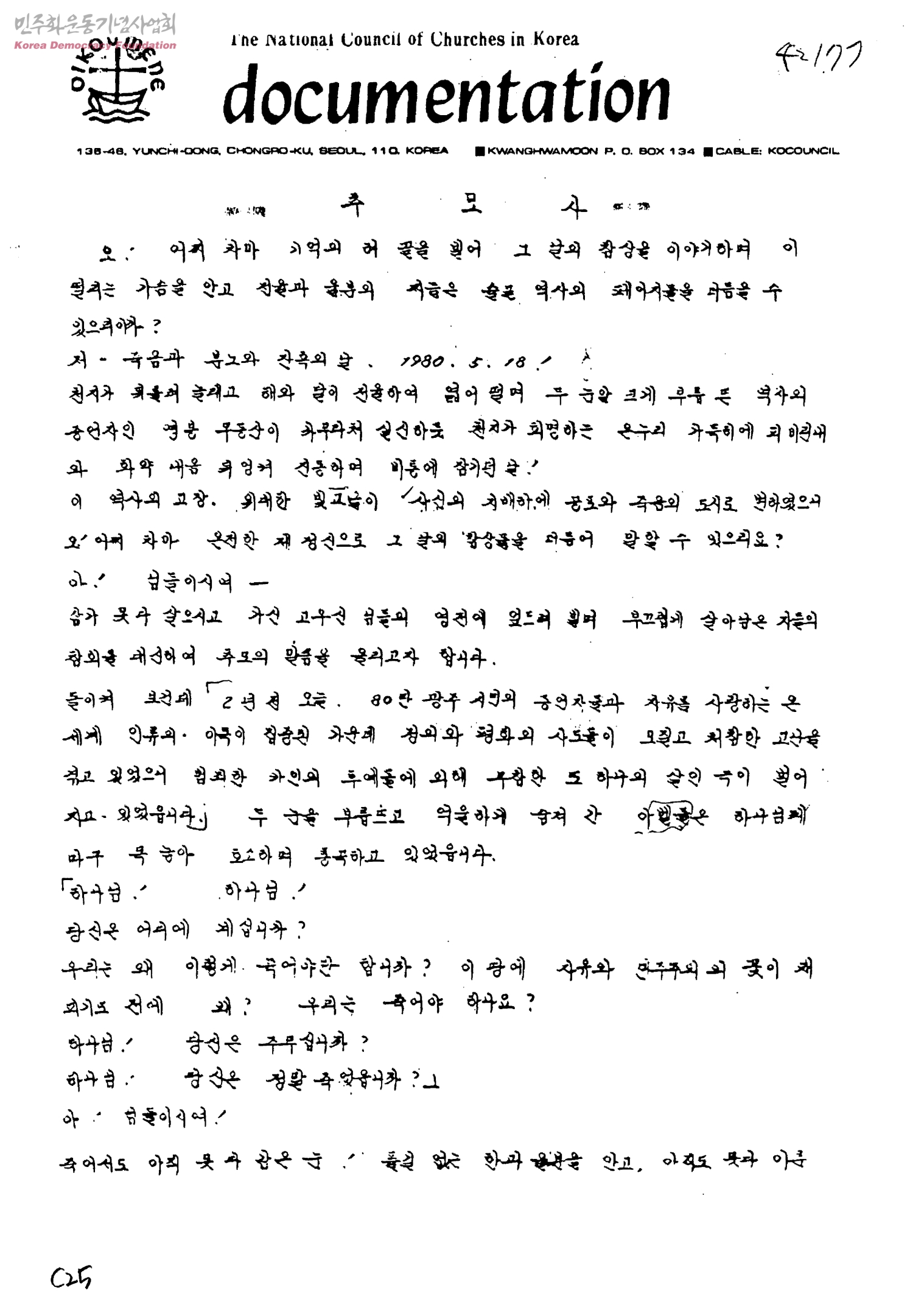 추도사[광주 YMCA의 제2주기 5.18추모예배]
