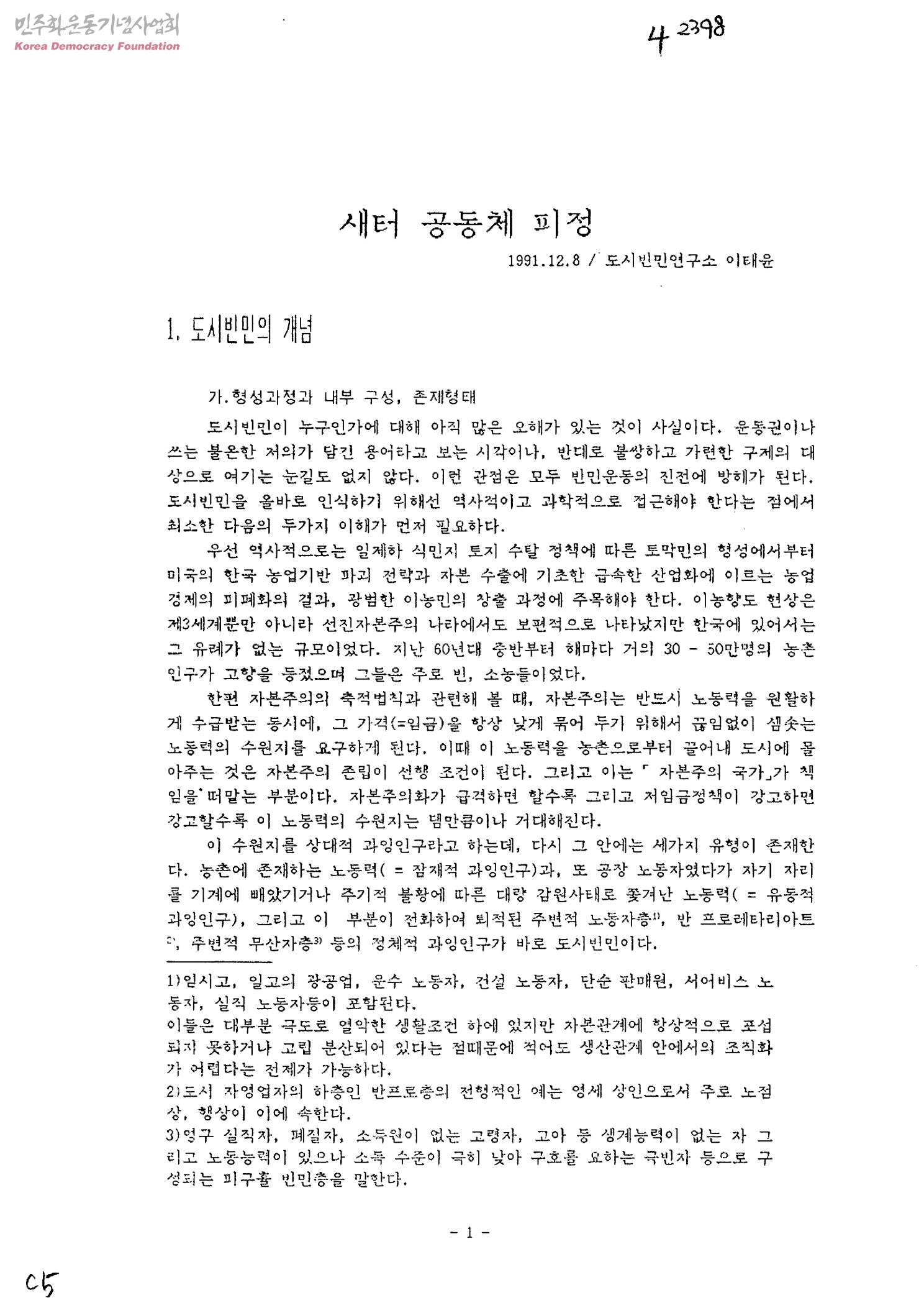 - 도시빈민연구소 이태윤