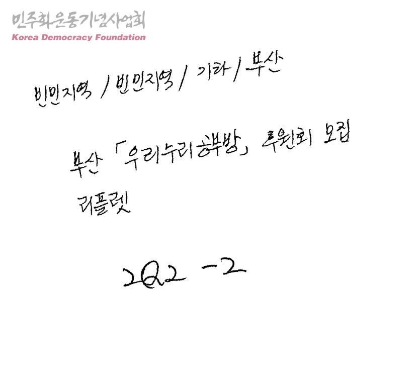 집,밥 그리고 평화-부산 '우리누리공부방' 후원회 모집 리플렛