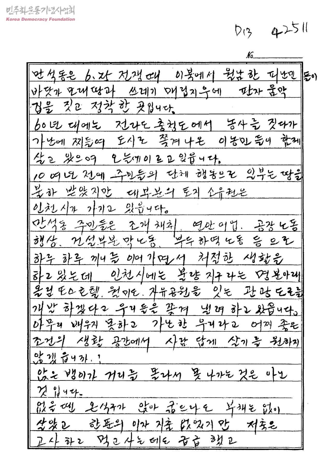 [만석동 무허가 주택 철거 주민들의 호소문]