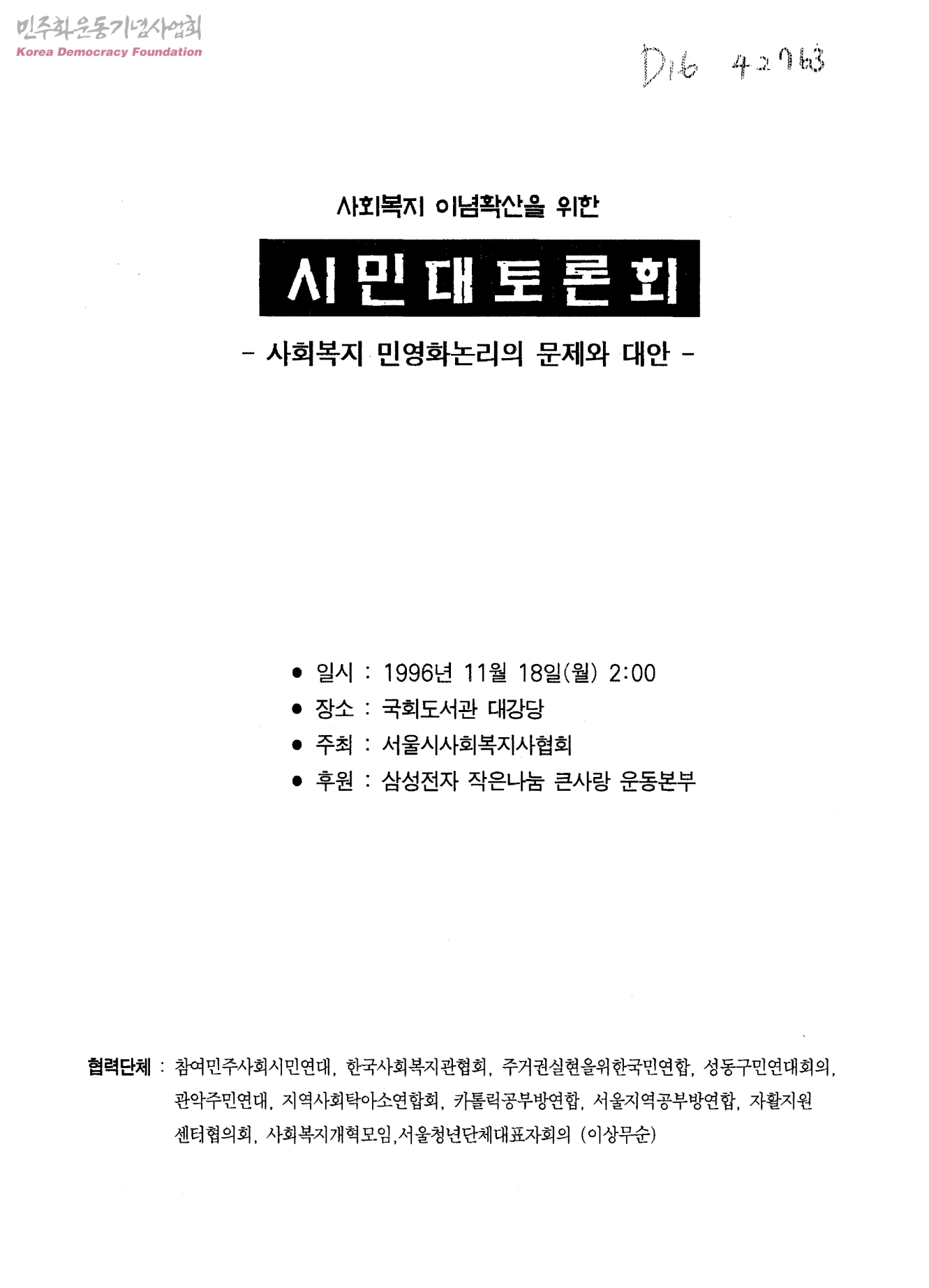 사회복지 이념확산을 위한 시민대토론회-사회복지 민영화논리의 문제와 대안