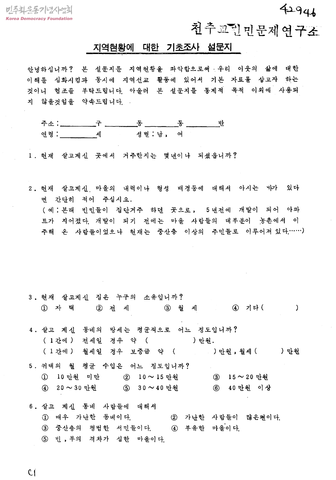 지역현황에 대한 기초조사 설문지