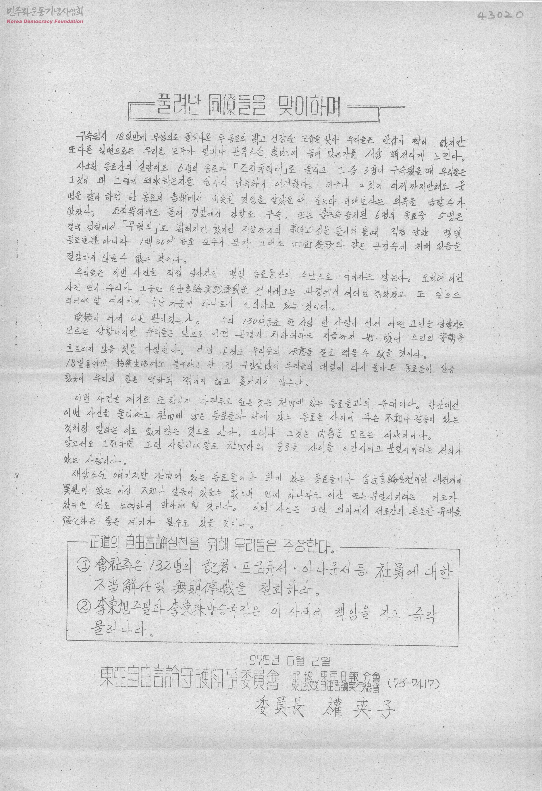 - 생산자 및 기증자가 ‘박용수’인 사진의 사용은 구매신청을 클릭하여 직접 사진 구매 신청을 하실 수 있습니다. 생산자 및 기증자가 ‘경향신문사’인 사진의 사용은 경향신문사 담당자(02-3701-1635)를 통해 구매하실 수 있습니다. 그 외의 생산자 및 기증자는 민주화운동기념사업회 사료관 담당자( hyunchaek@kdemo.or.kr / 02-6440-8961 )에 문의바랍니다.