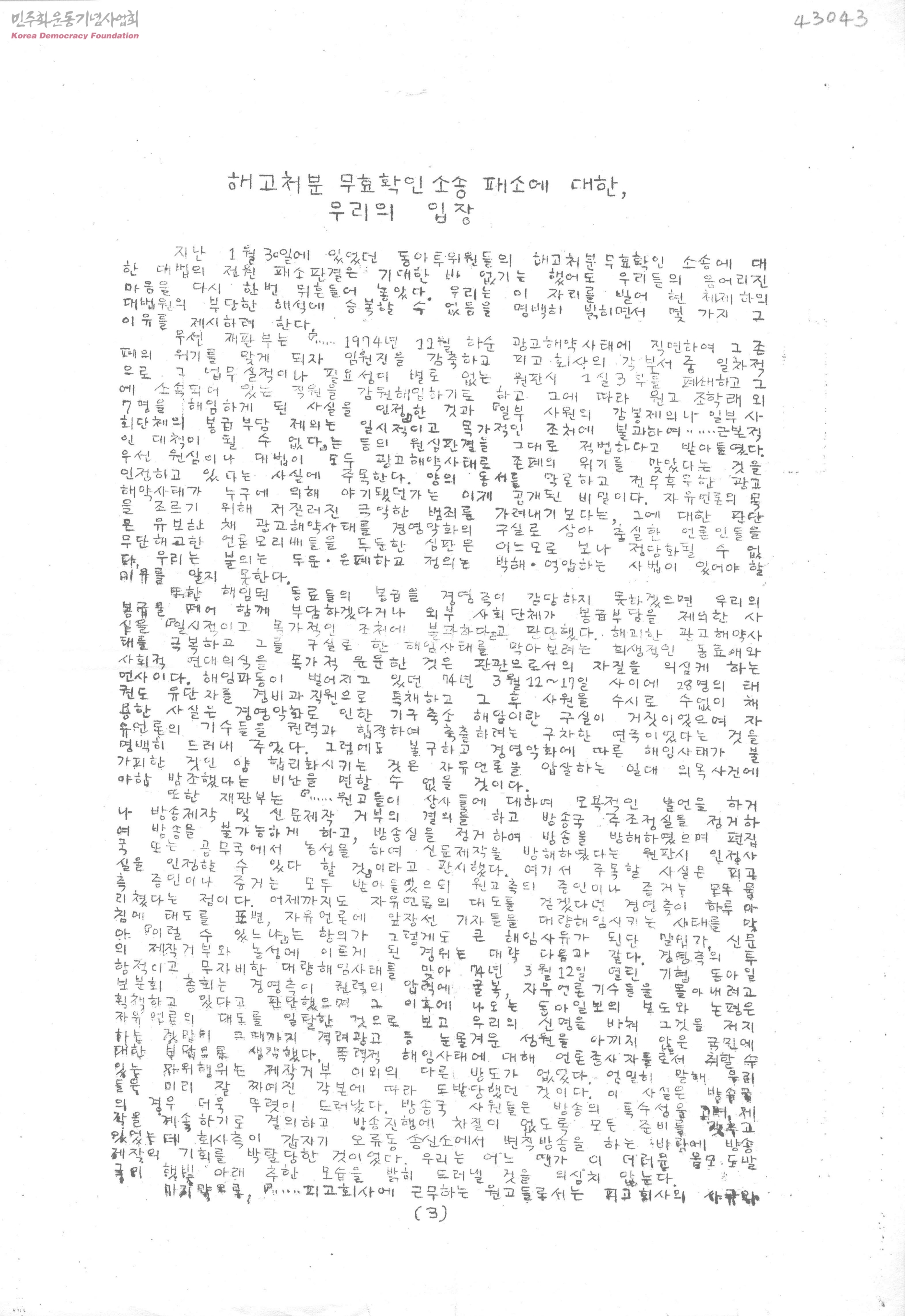 해고처분 무효확인소송 패소에 대한, 우리의 입장