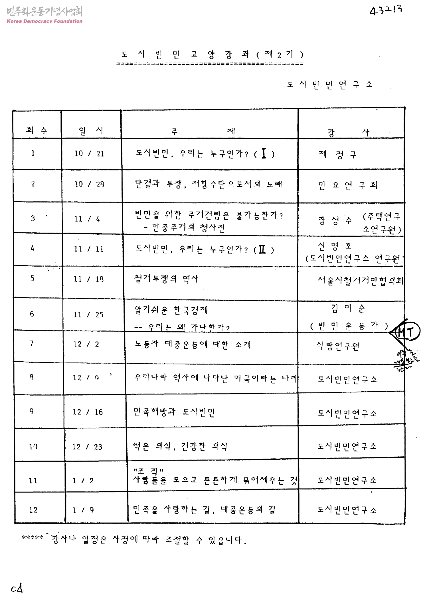 도시빈민교양강좌(제2기)