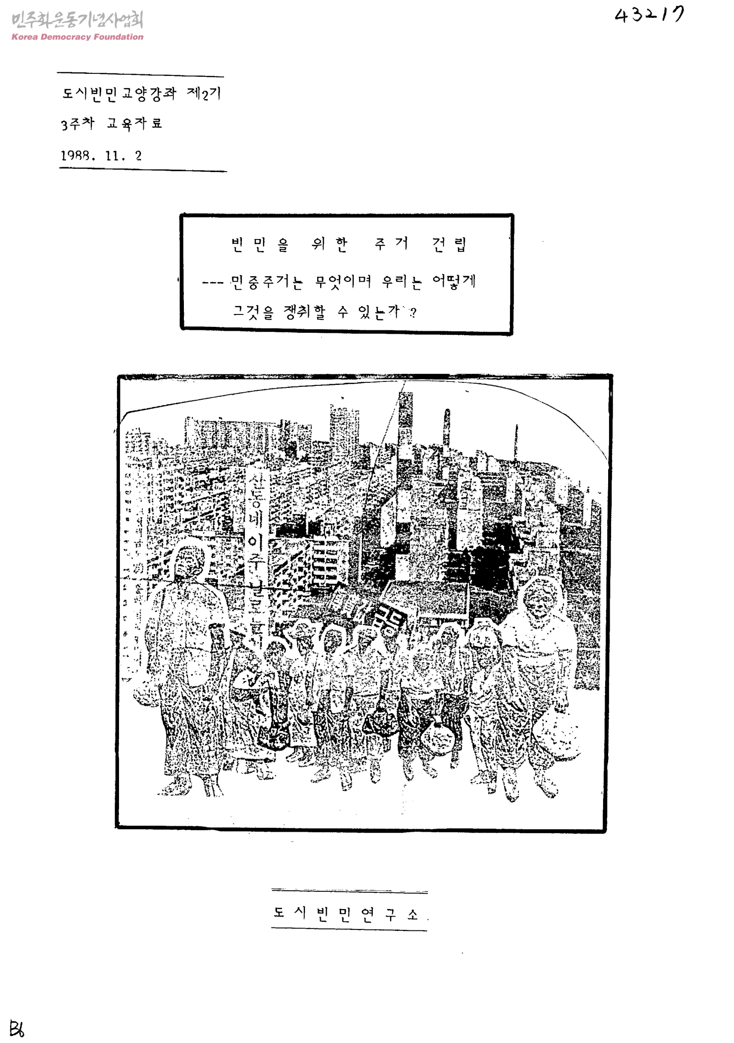 <빈민을 위한 주거 건립-민중주거는 무엇이며 우리는 어떻게 그것을 쟁취할 수 있는가(도시빈민교양강좌 제2기 3주차 교육자료)>