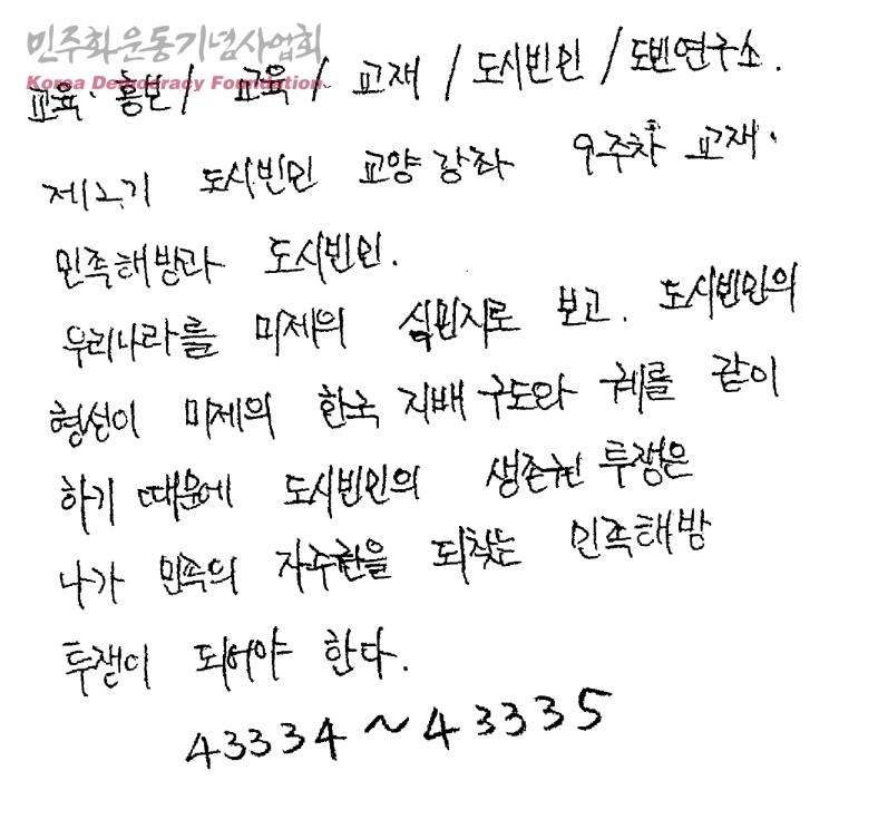 제2기 도시빈민 교양강좌-민족해방과 도시빈민