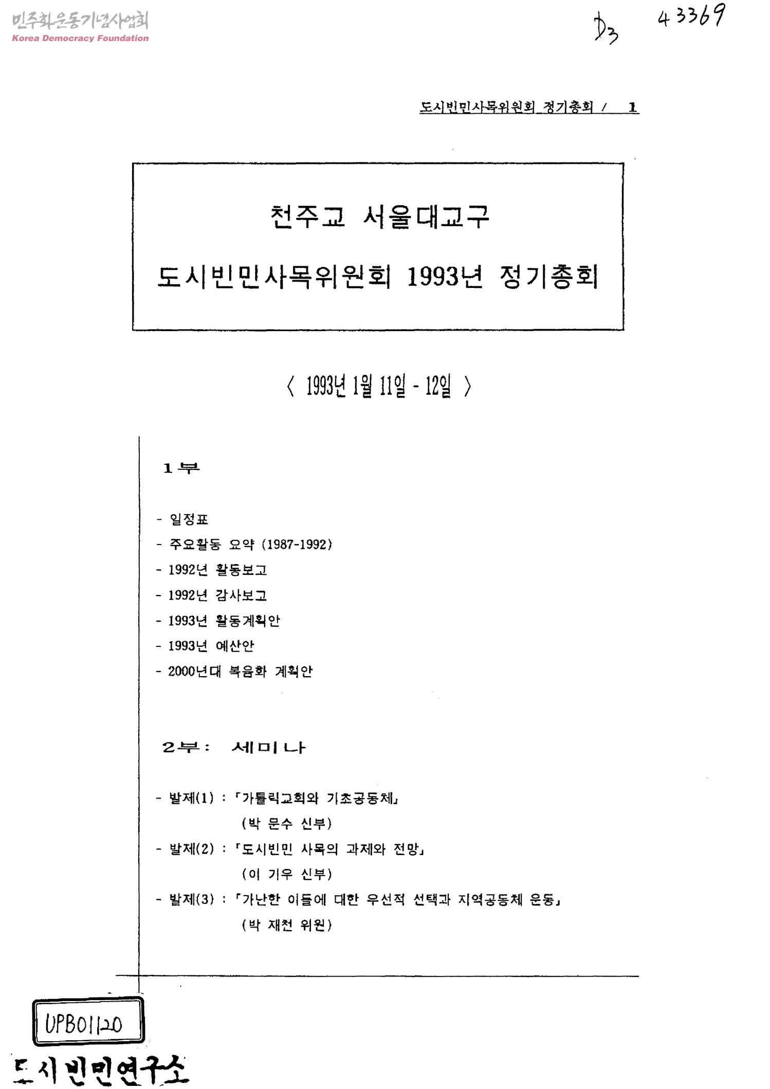 천주교 서울대교구 도시빈민사목위원회 1993년 정기총회