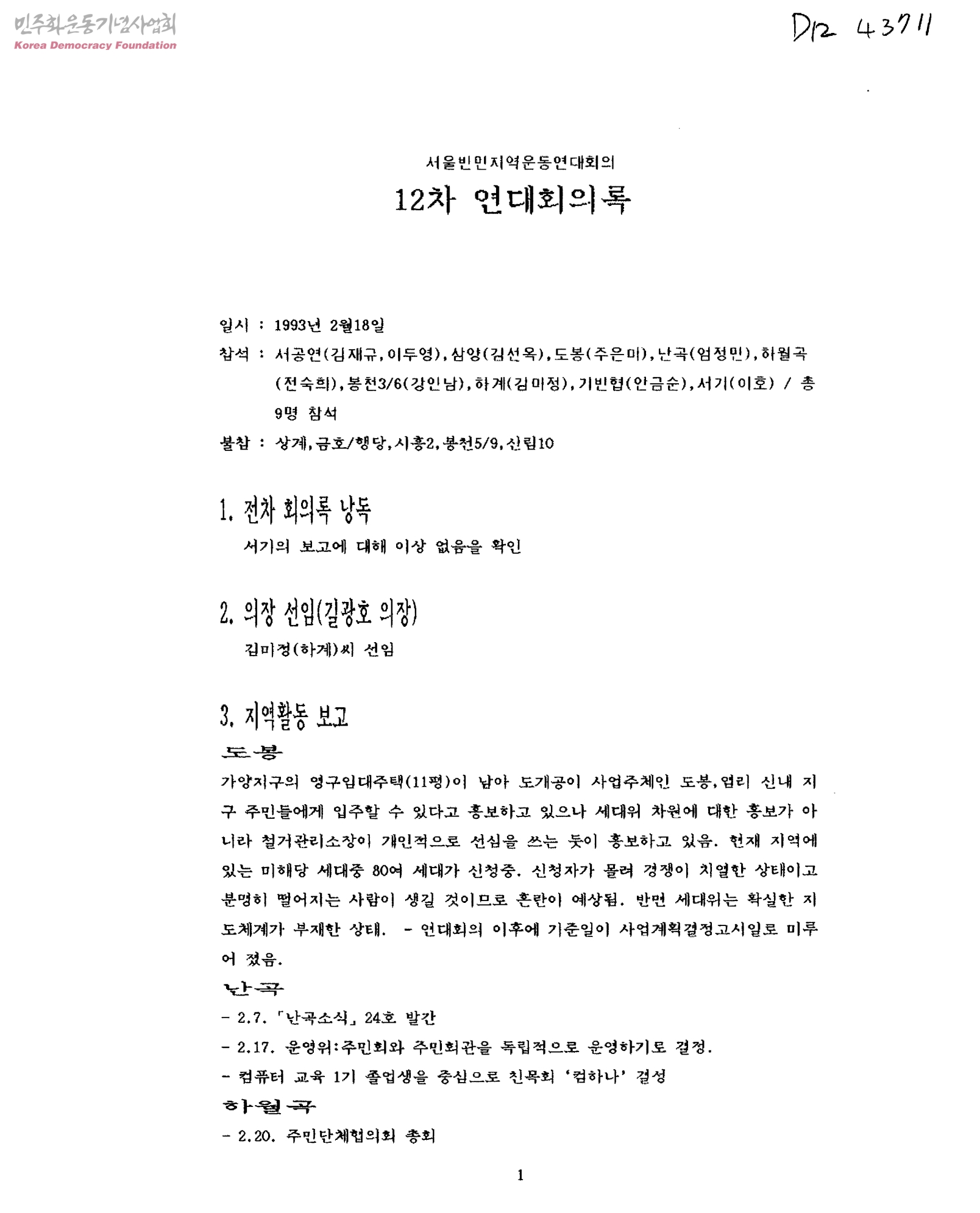 서울빈민지역운동연대회의 12차 연대회의록