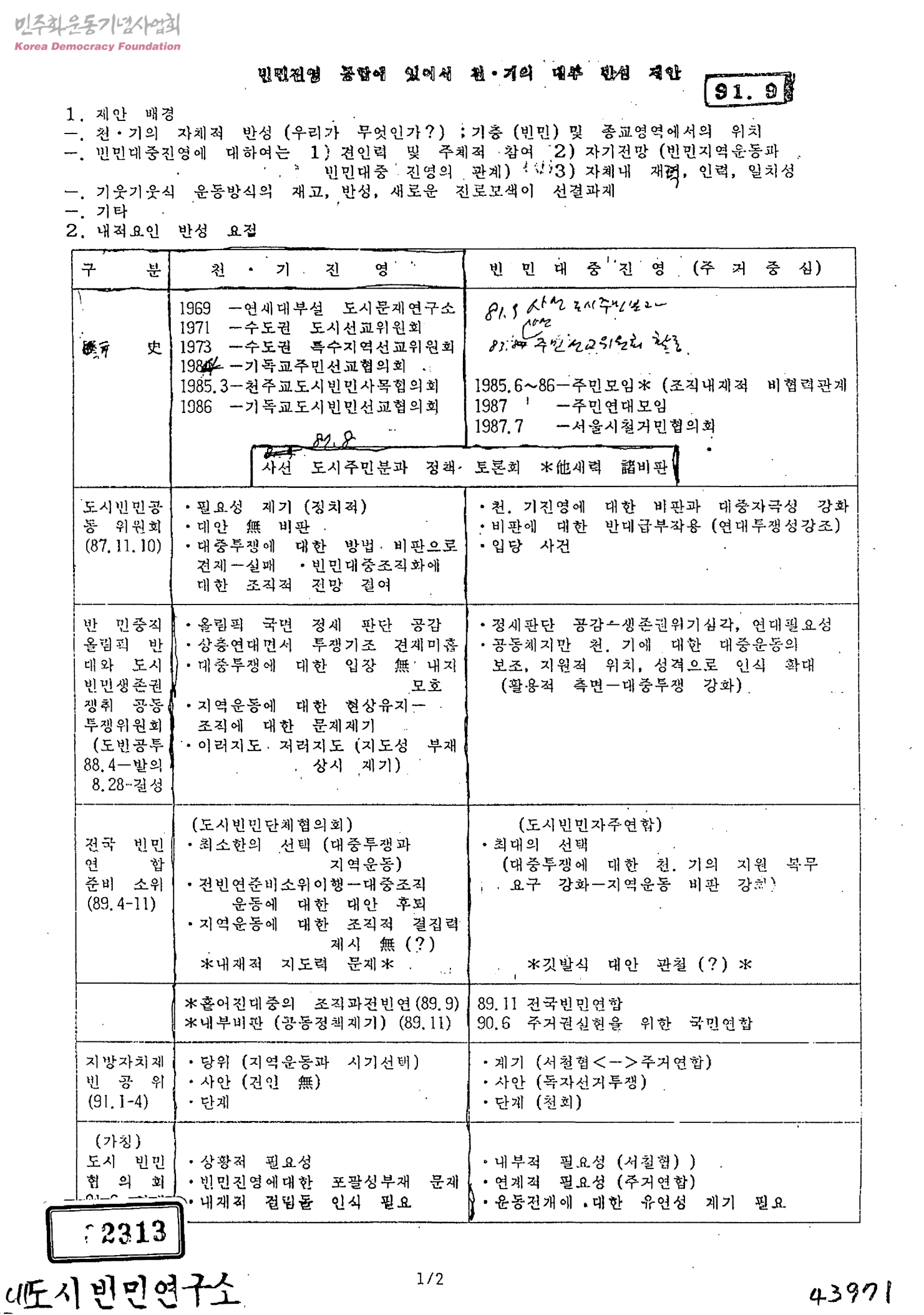 빈민진영 통합에 있어서 천ㆍ기의 내부 반성 제안