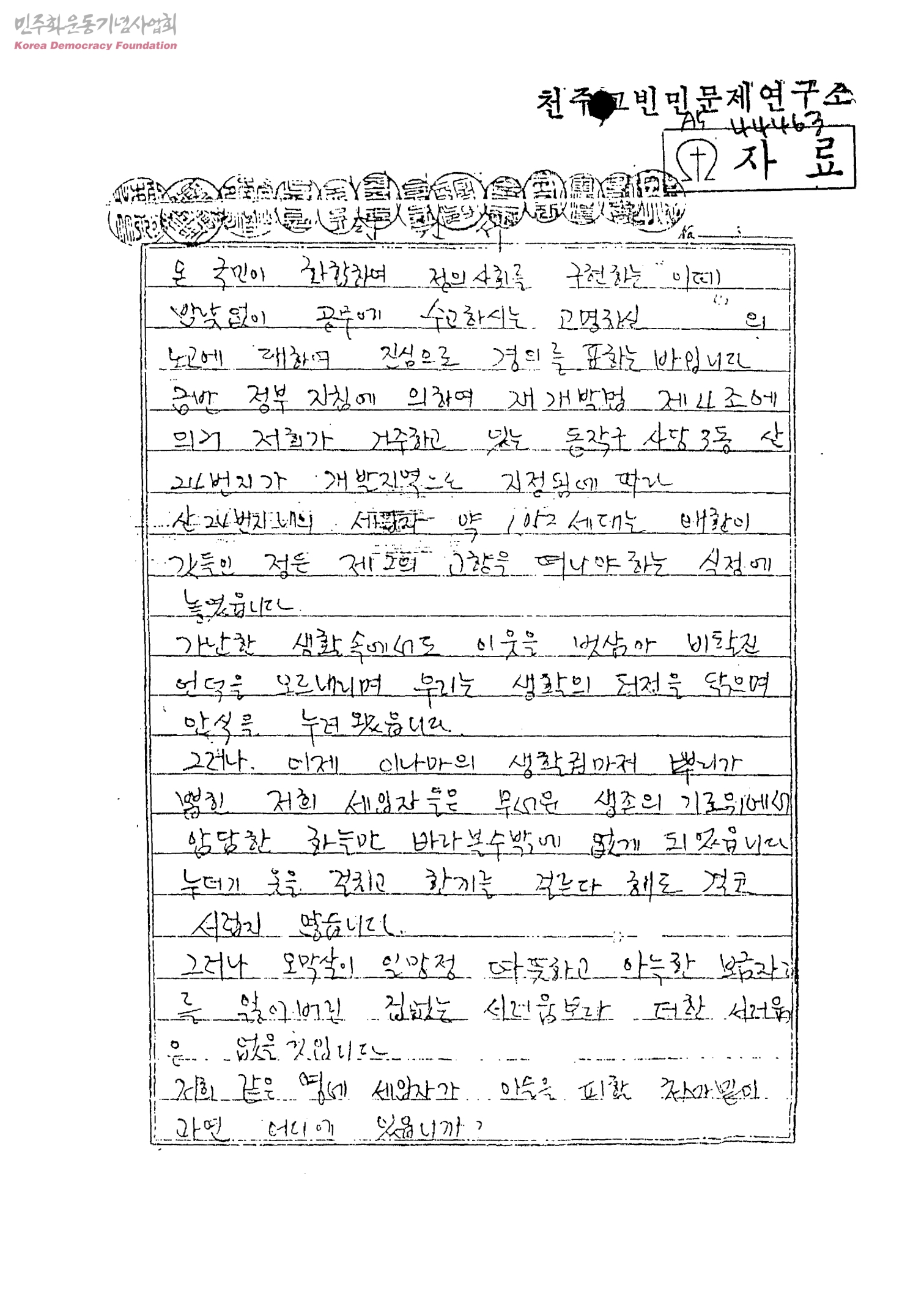 [서울시 동작구 사당3동 산24번지 철거주민의 탄원]