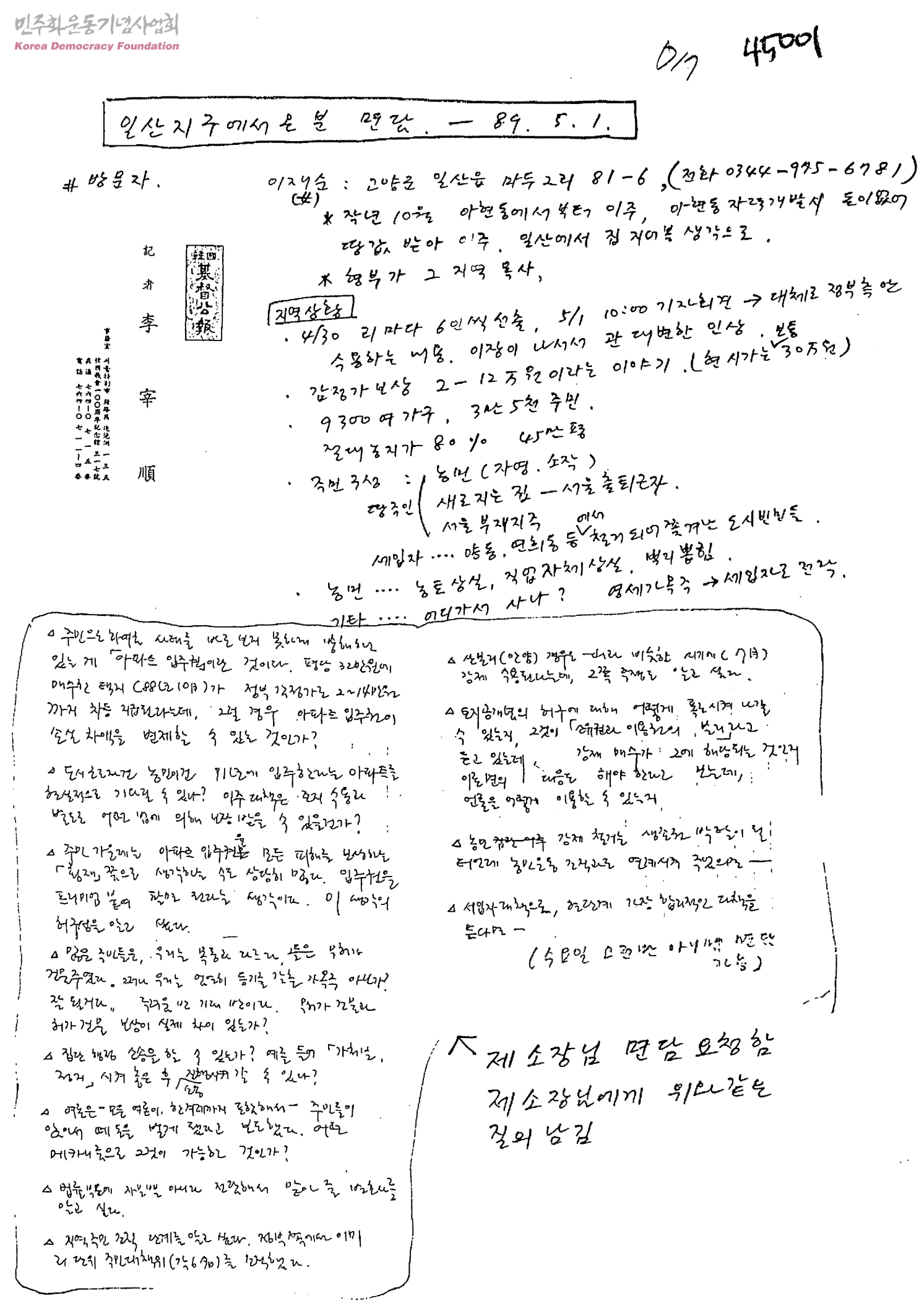 일산지구에서 온 분 면담