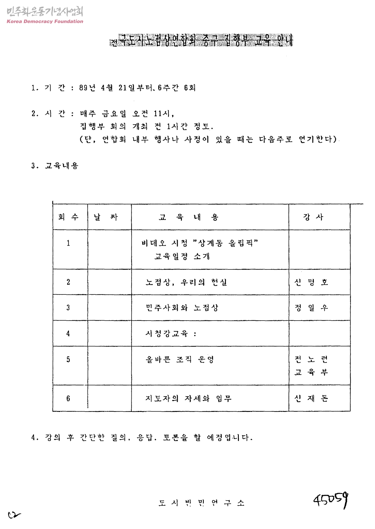 전국도시노점상연합회 중구 집행부 교육 안내