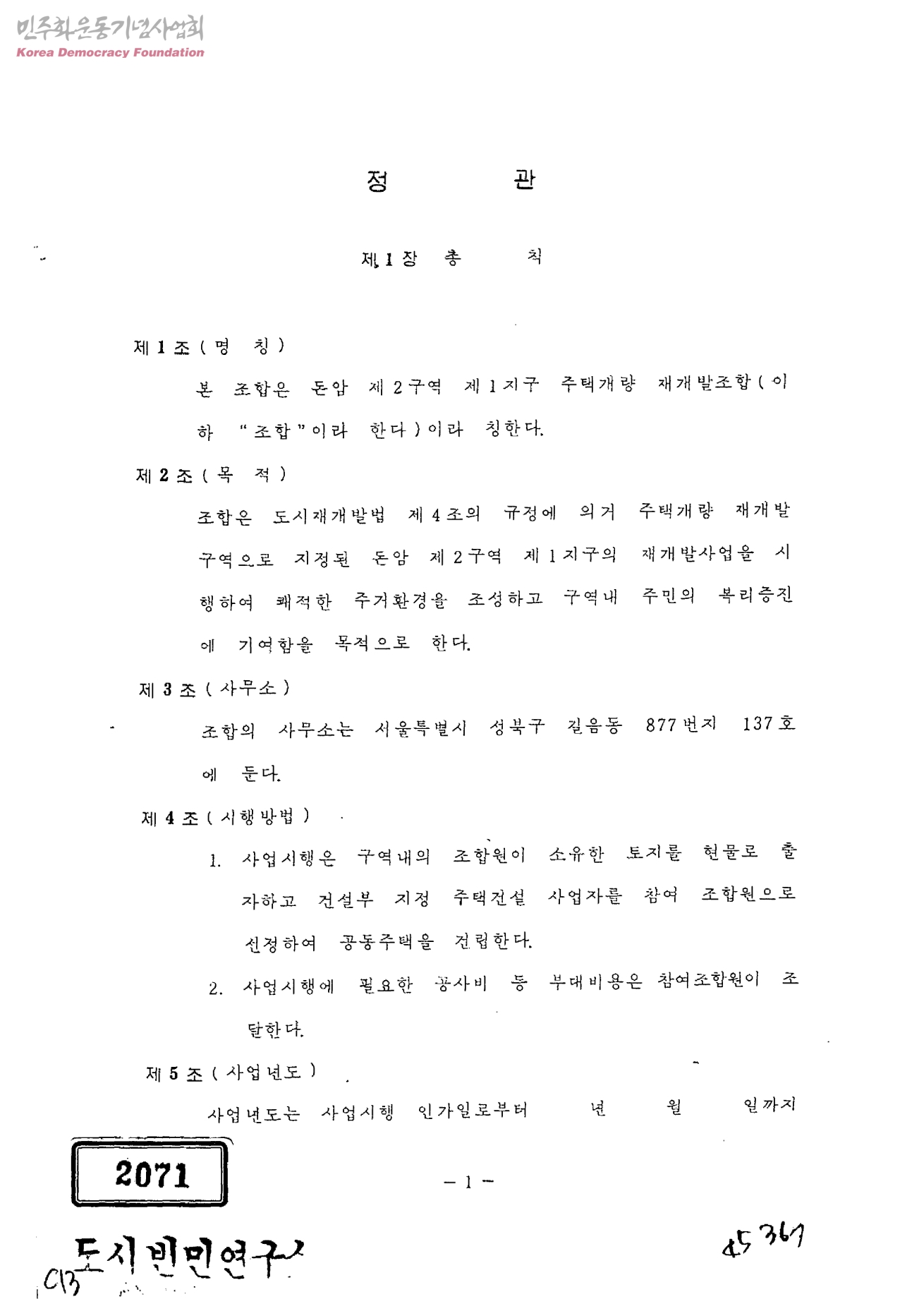정관[돈암 제2구역 제1지구 주택개량 재개발조합]