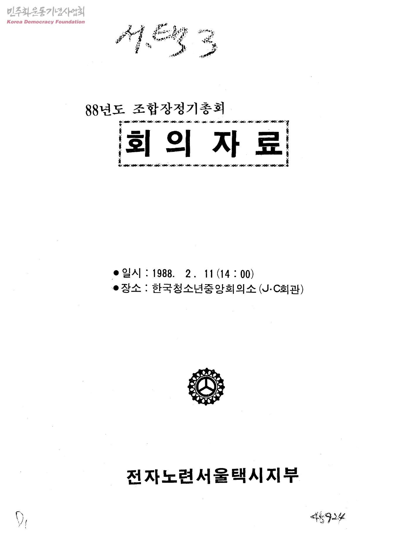 88년도 조합장정기총회 회의자료
