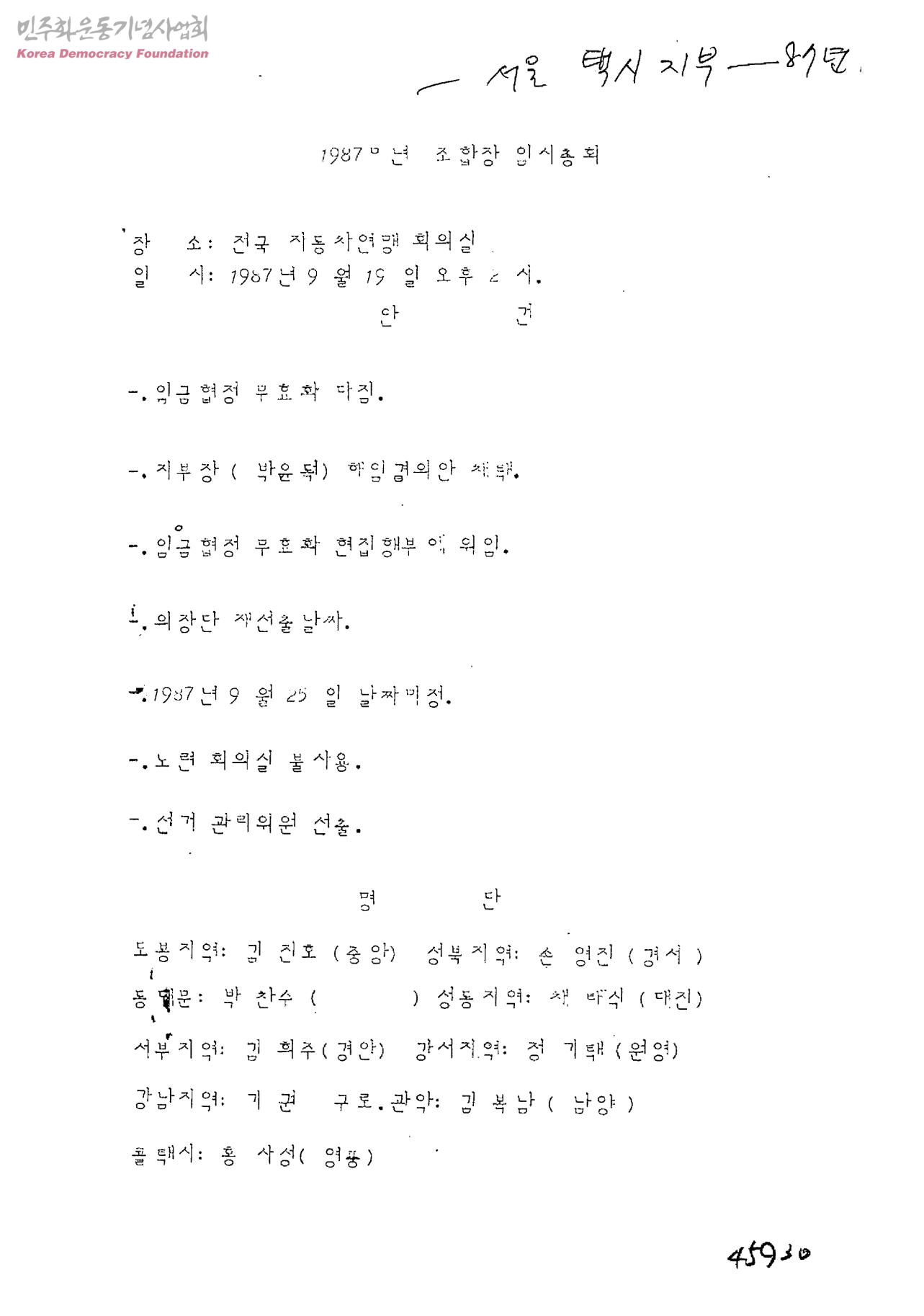 1987년 조합장 임시총회
