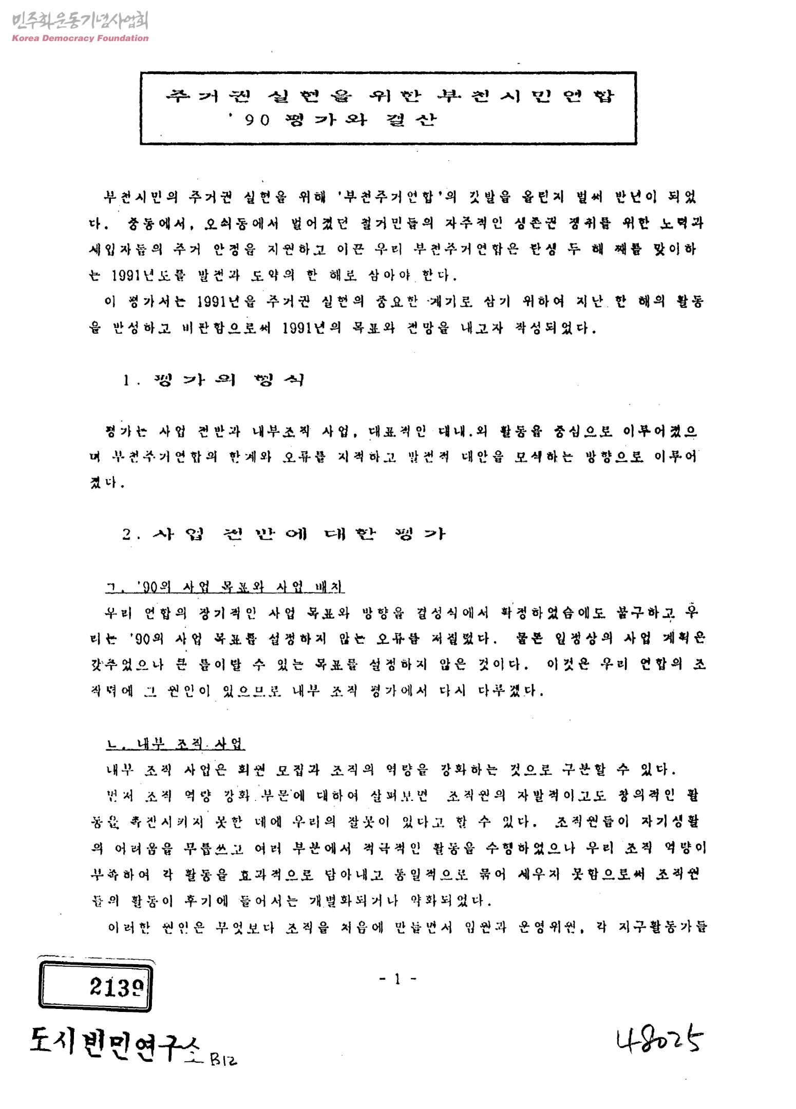 주거권 실현을 위한 부천시민연합 90 평가와 결산