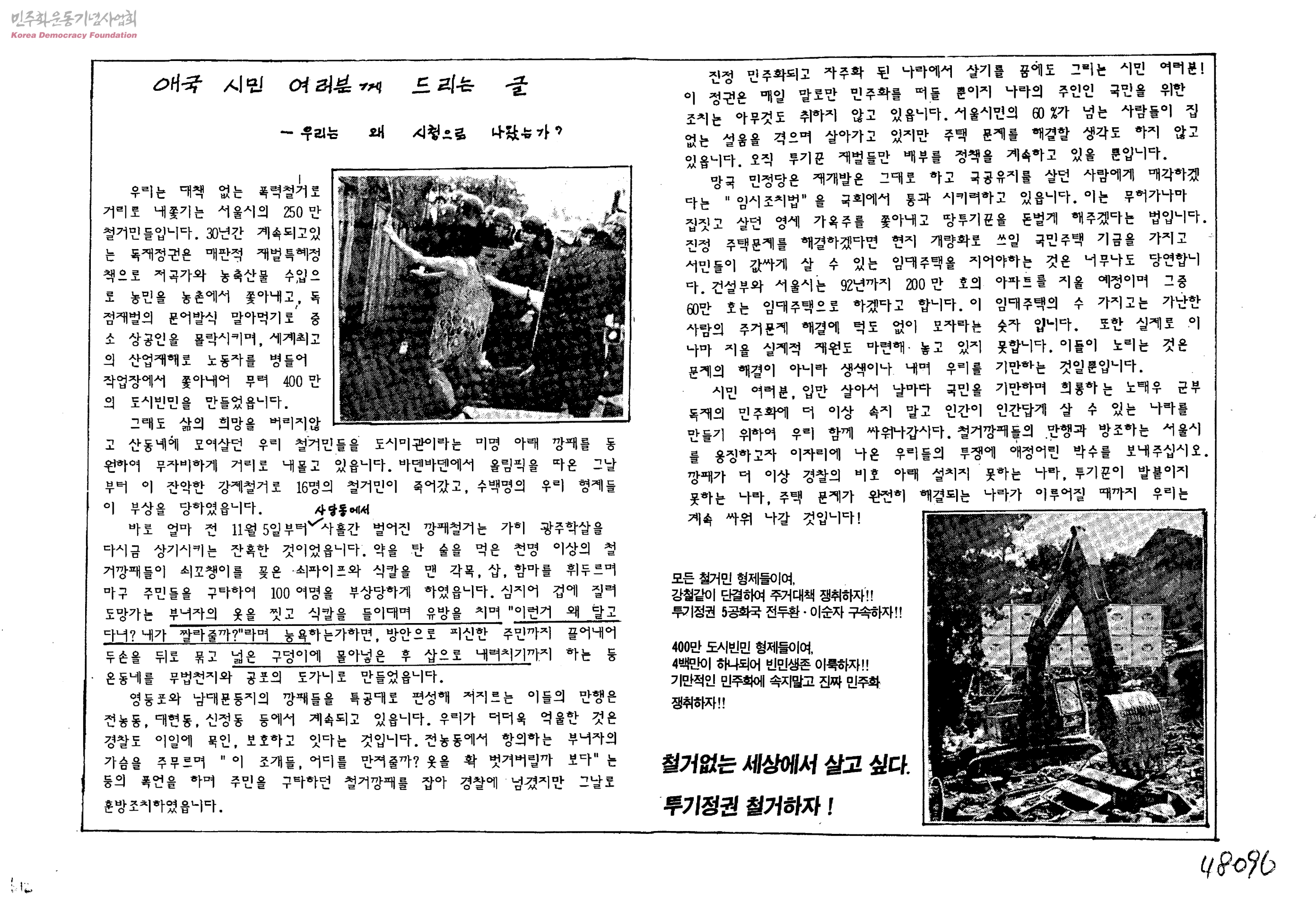 - 생산자 및 기증자가 ‘박용수’인 사진의 사용은 구매신청을 클릭하여 직접 사진 구매 신청을 하실 수 있습니다. 생산자 및 기증자가 ‘경향신문사’인 사진의 사용은 경향신문사 담당자(02-3701-1635)를 통해 구매하실 수 있습니다. 그 외의 생산자 및 기증자는 민주화운동기념사업회 사료관 담당자( hyunchaek@kdemo.or.kr / 02-6440-8961 )에 문의바랍니다.